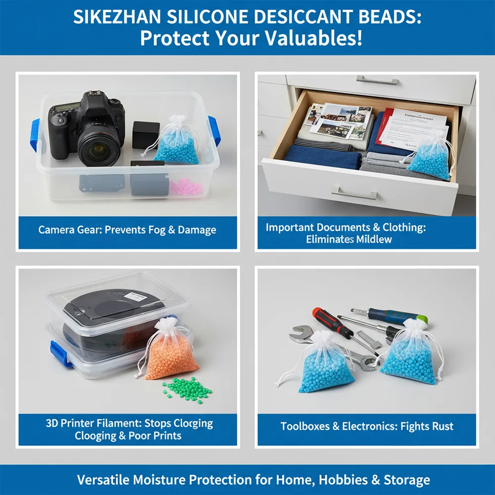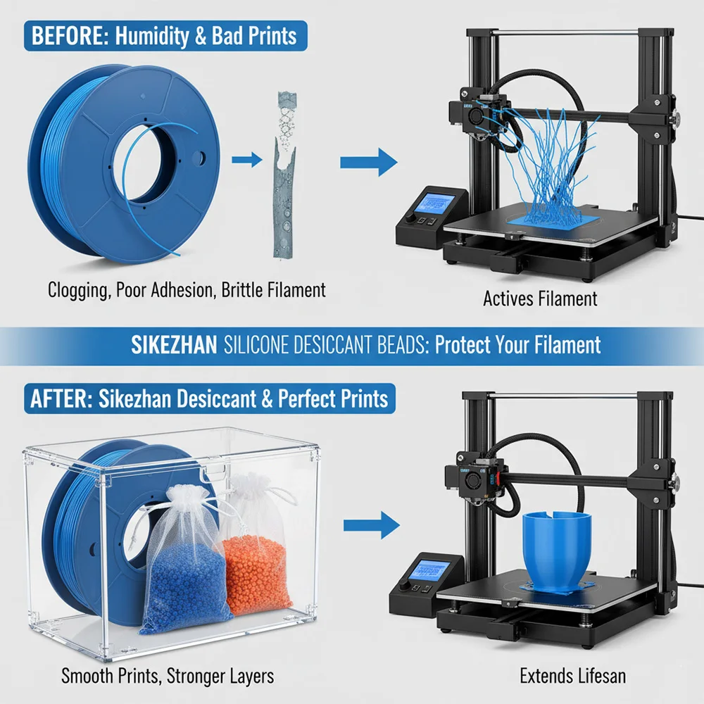 Perle di Gel di Silice Riutilizzabili per Filamenti di Stampanti 3D, Assorbitori di Umidità che Cambiano Colore con Sacchetti per Scatole di Essiccazione Bobine