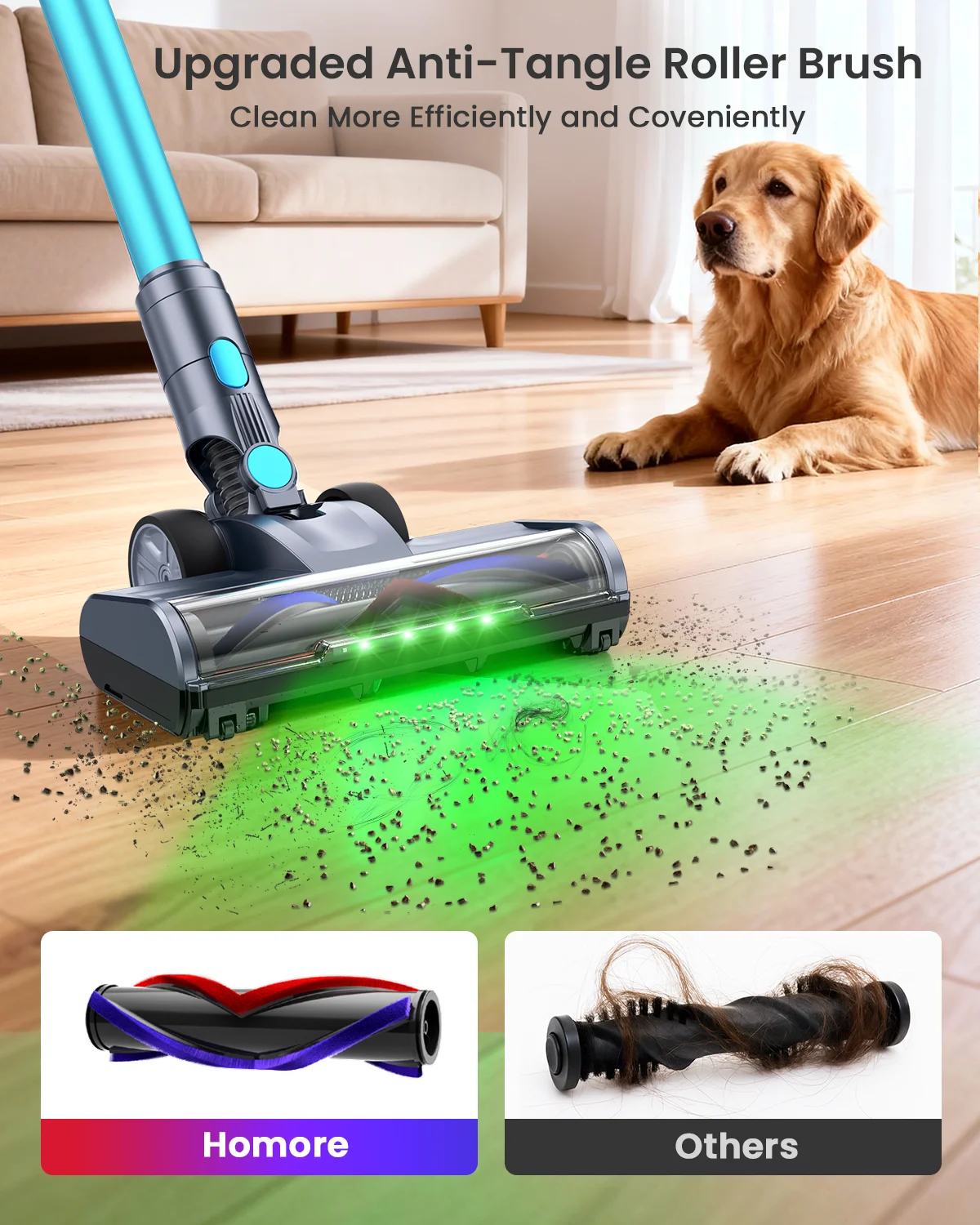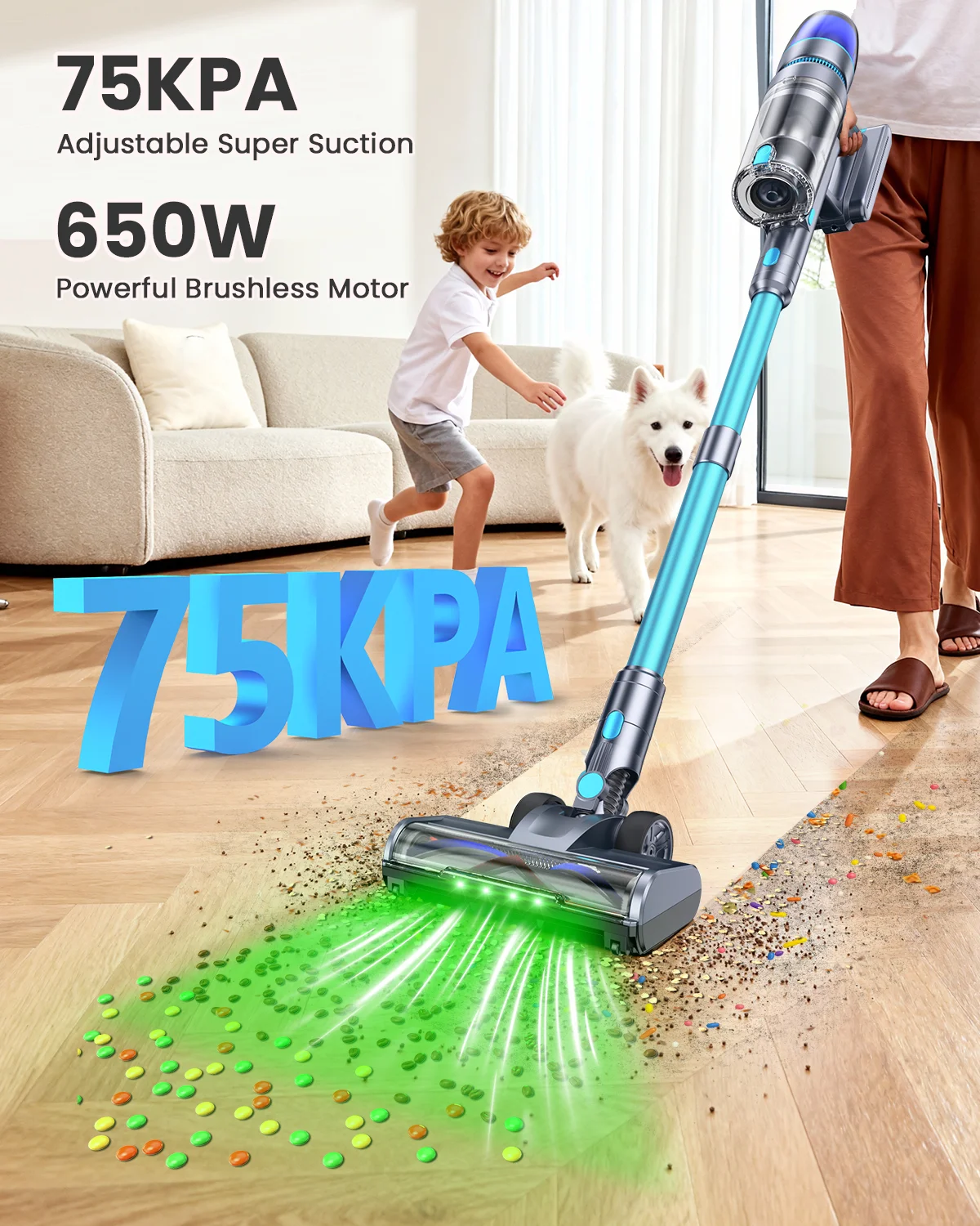 Homore NH007 Aspirapolvere Senza Fili Potente 650W/75KPA con Luce Ambientale LED, Aspirazione Intelligente e Design Autoportante