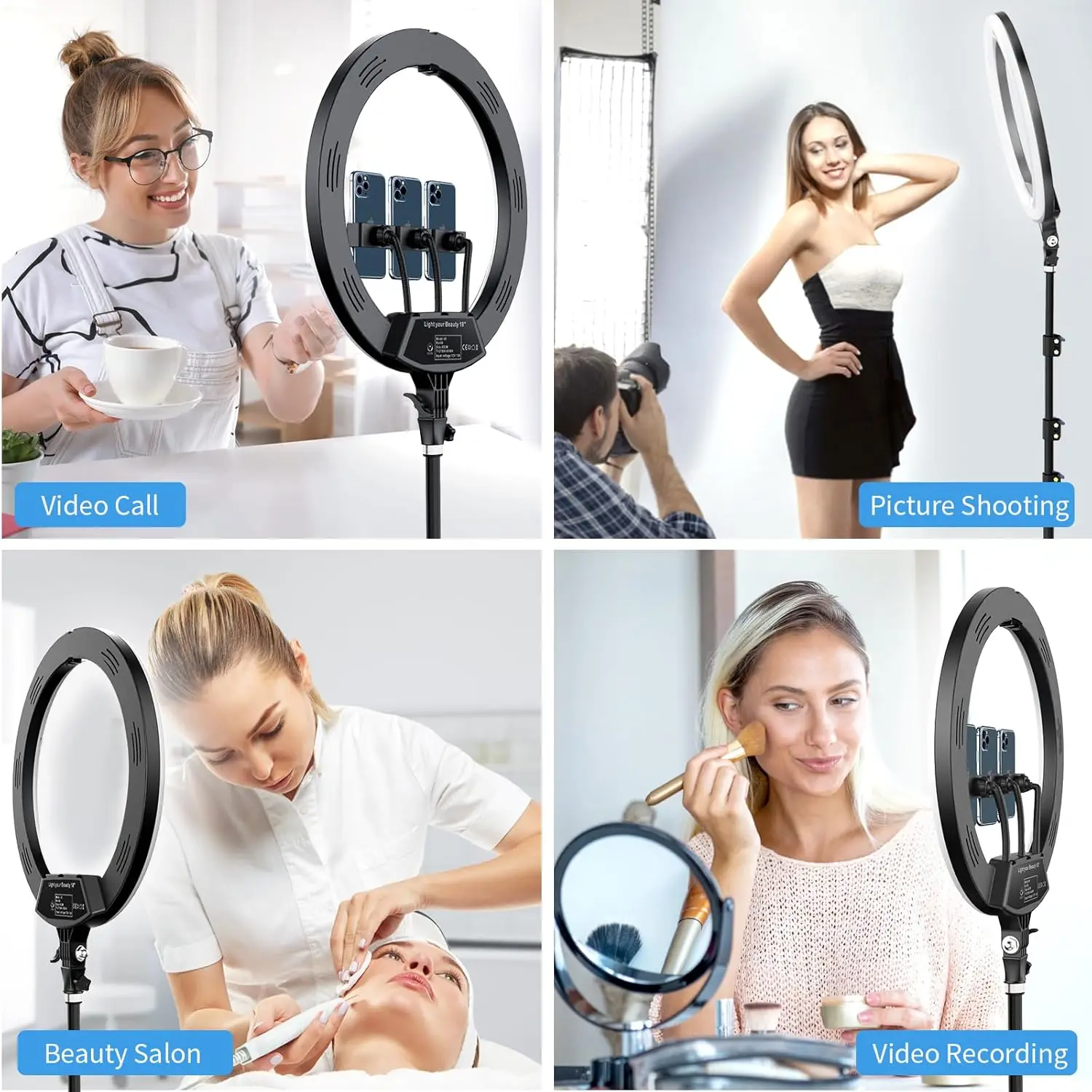 Lampada da studio fotografico con luce ad anello da 18 pollici con supporto per treppiede da 78 pollici bicolore 2700-6500K per registrazione video Trucco Selfie Ring Light
