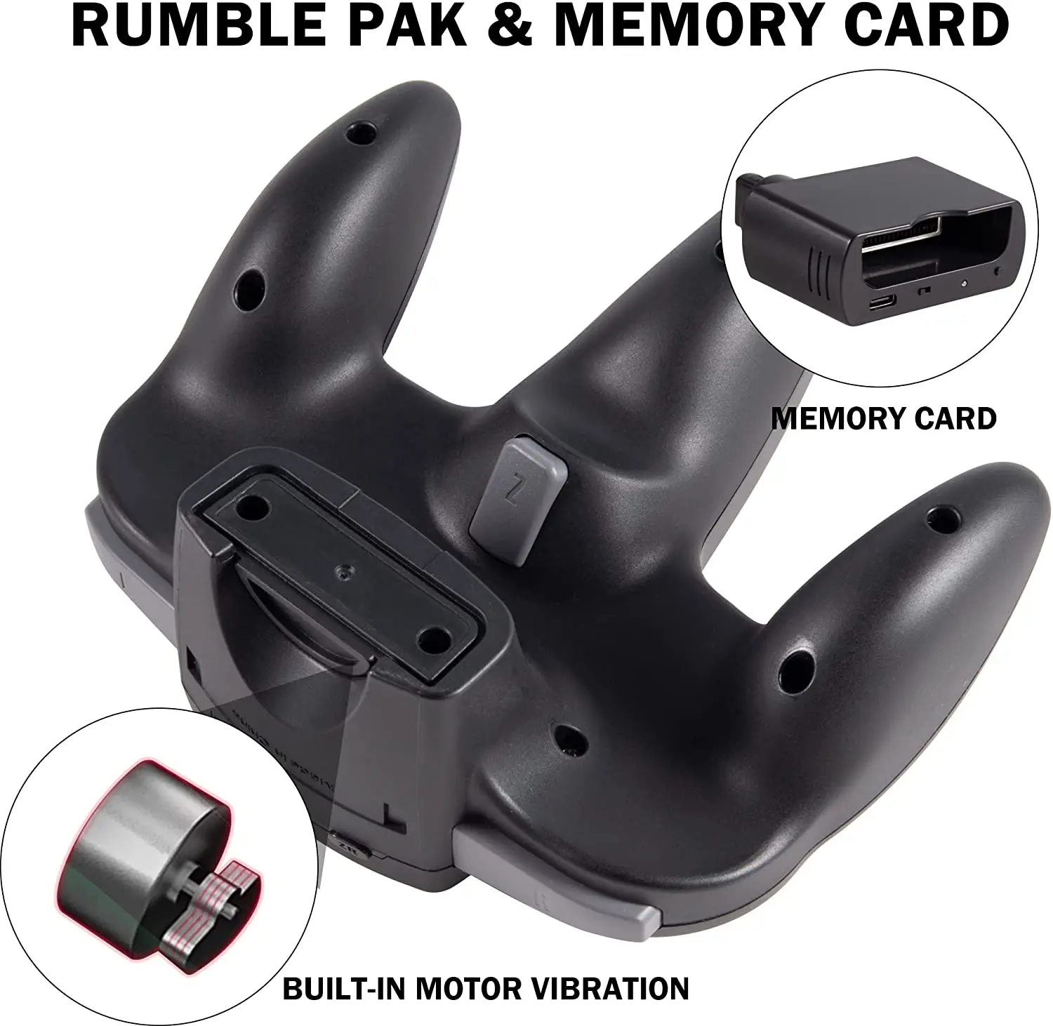 Compatibile con schede di memoria di gioco originali, schede di memoria di gioco di terze parti e schede di memoria di archiviazione standard (commutate dalla memoria pak su Dongle)