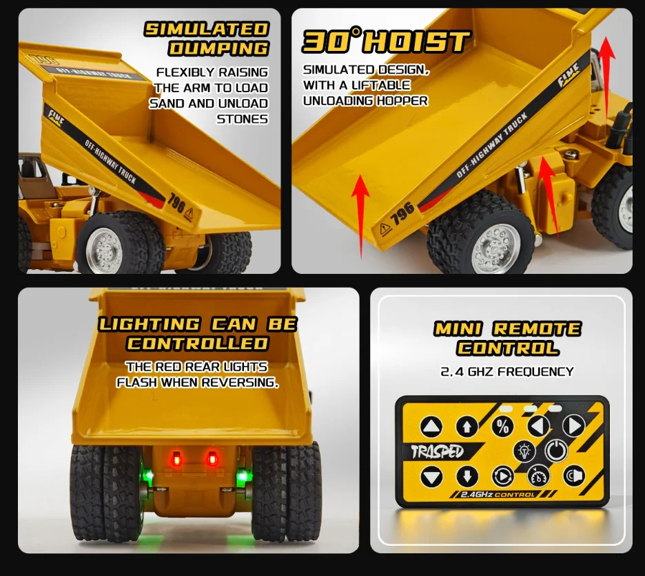 1/64 2.4G RC Escavatore Ingegneria Veicolo In Lega Desktop RC Autocarro Con Cassone ribaltabile Telecomando Escavatore Ingegneria Auto Giocattolo HG4-301