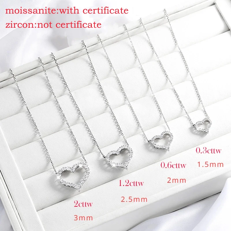 Smyoue 2CT Pass Testato Collana a Cuore Moissanite per Donna S925 Argento Placcato Platino Diamanti Simulati Ciondolo Regalo di Compleanno