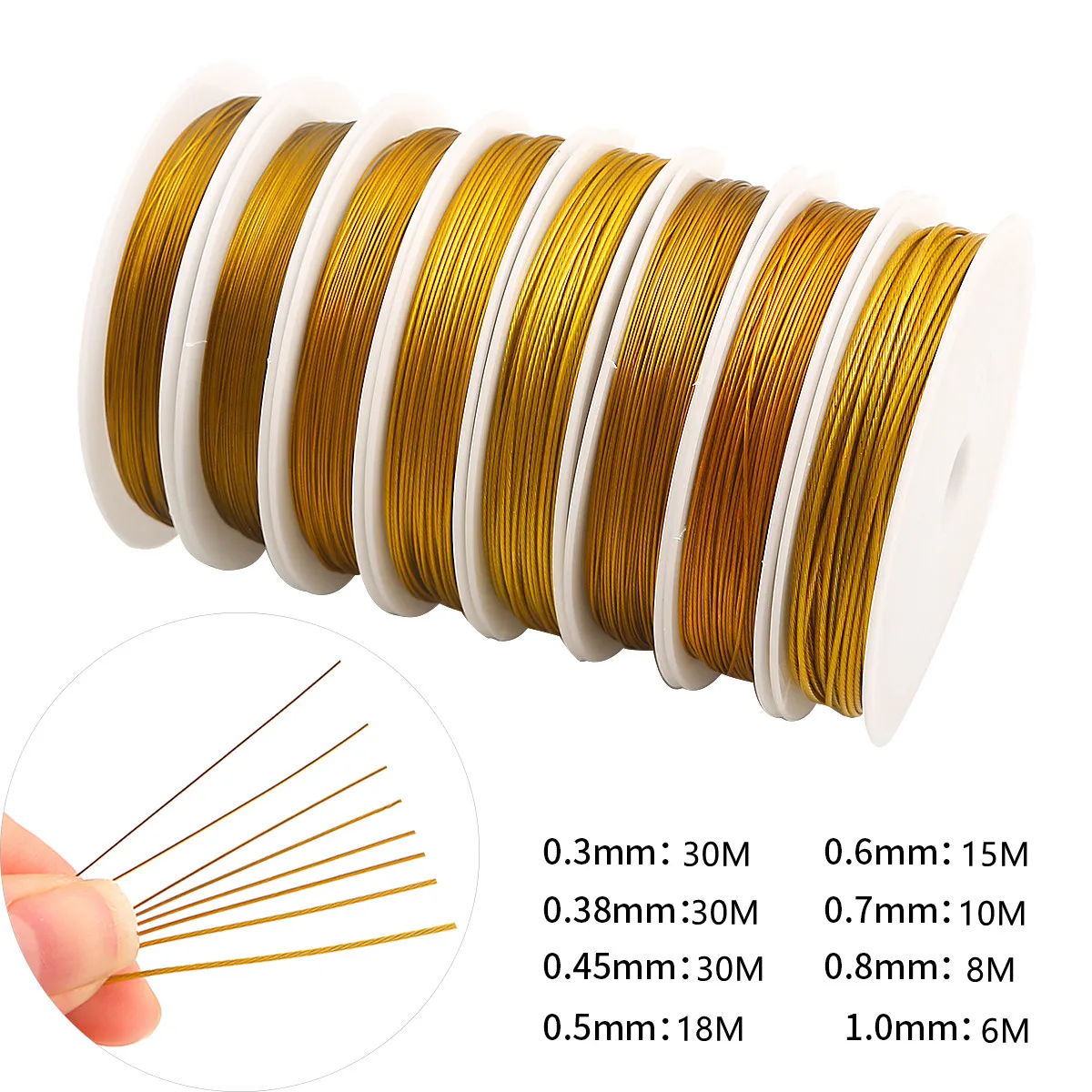 1 rotolo 0.3/0.45/0.5/0.6/0.8/1mm argento/oro filo di acciaio inossidabile coda di tigre filo perline fatto a mano per componenti per la creazione di gioielli