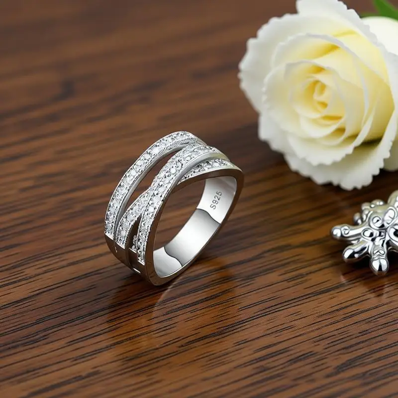 Anelli di Grande Formato 5-13 per Uomo e Donna in Puro Argento Sterling 925 con Cristalli Austriaci, Gioielli Unisex per Matrimoni e Feste, Idea Regalo