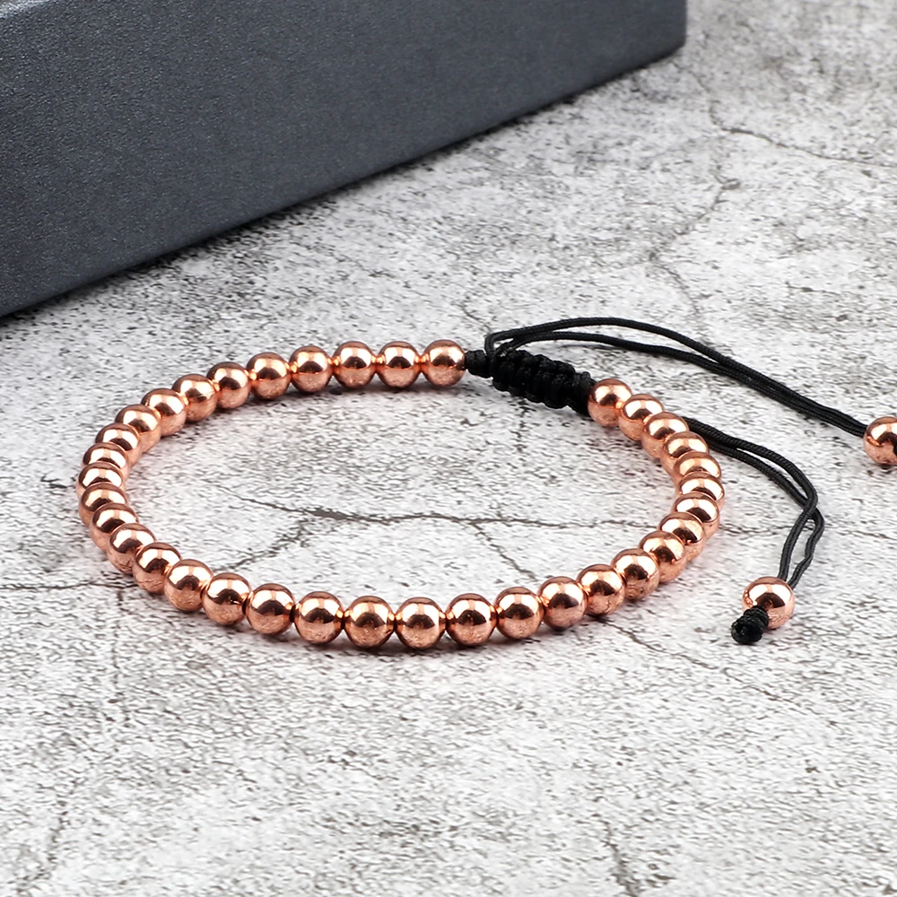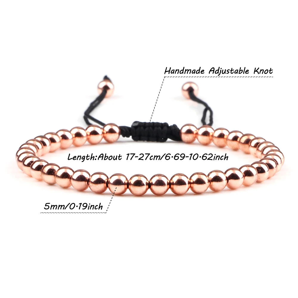 Braccialetti alla moda con perline di rame Braccialetti intrecciati regolabili fatti a mano da 5 mm per donna Uomo Yoga Guarigione Gioielli di moda Pulseira