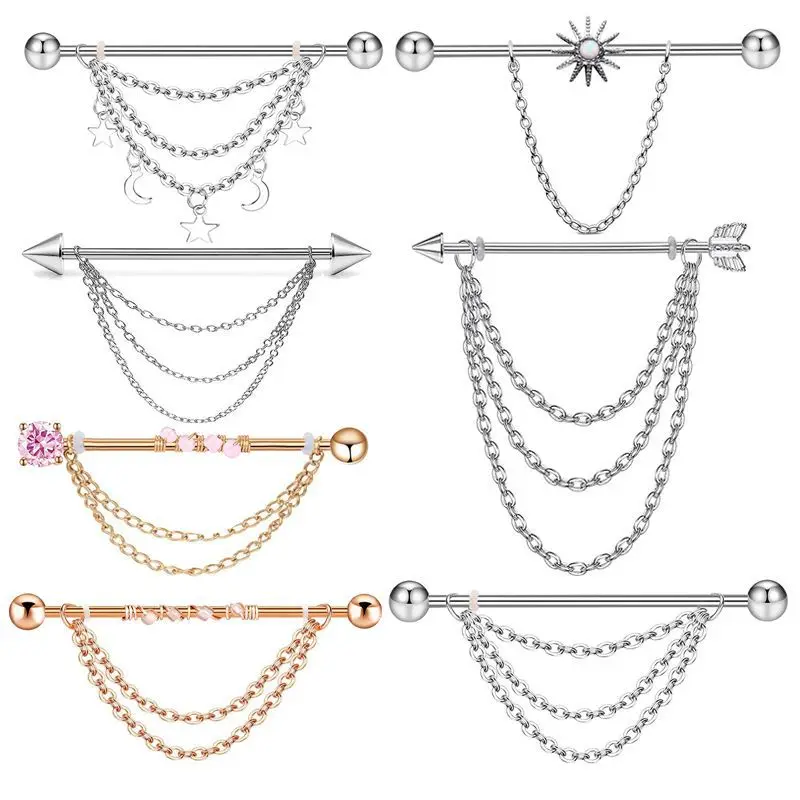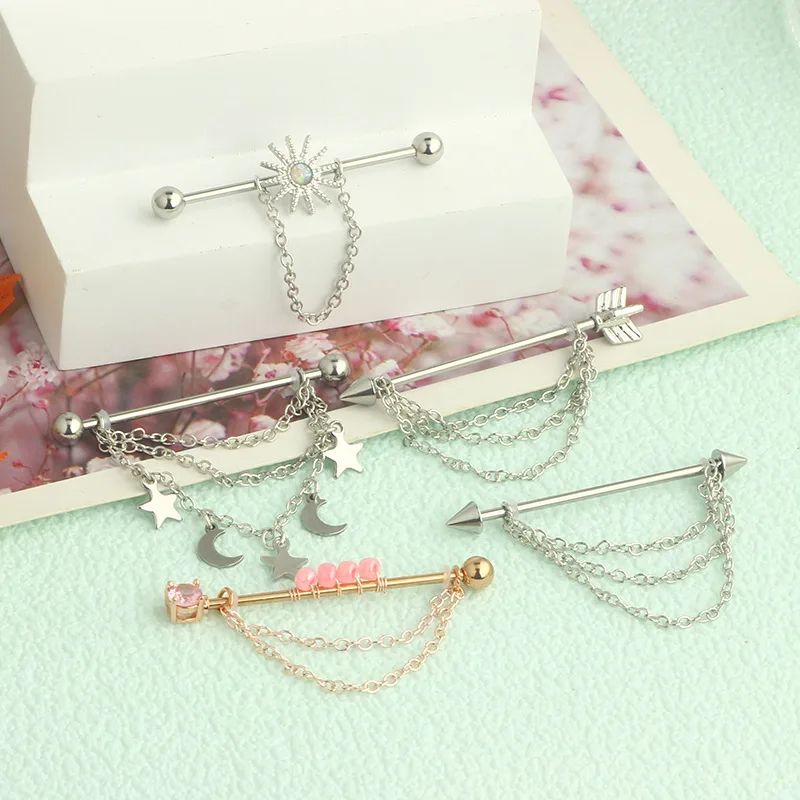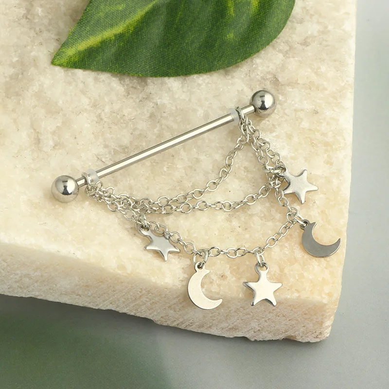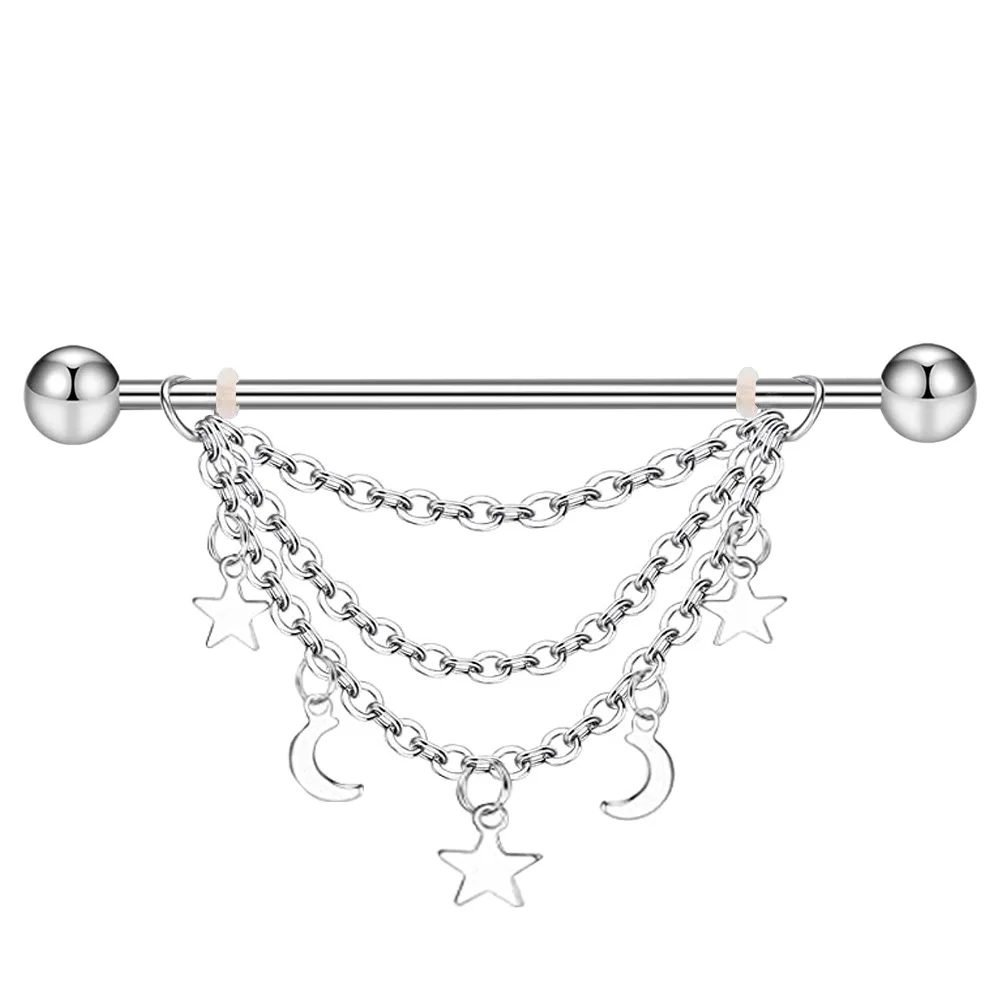 Gioielli con orecchini a forma di stella a catena lunga con piercing industriale in acciaio inossidabile di moda