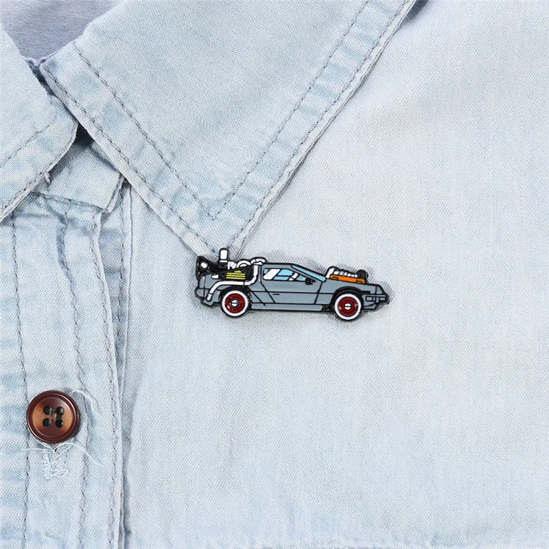 Moda Ritorno al futuro Spilla Delorean tempo spazio viaggi fan oltre smalto Spilla roche Distintivi Zaino Spille carine