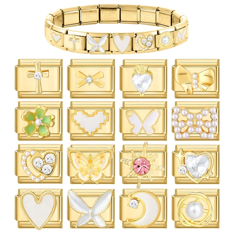 Y2k Fascino Ciliegia Farfalla Croce Stella Luna Ciondoli italiani Collegamenti adatti Bracciale da 9 mm Acciaio inossidabile Creazione di gioielli fai da te all'ingrosso