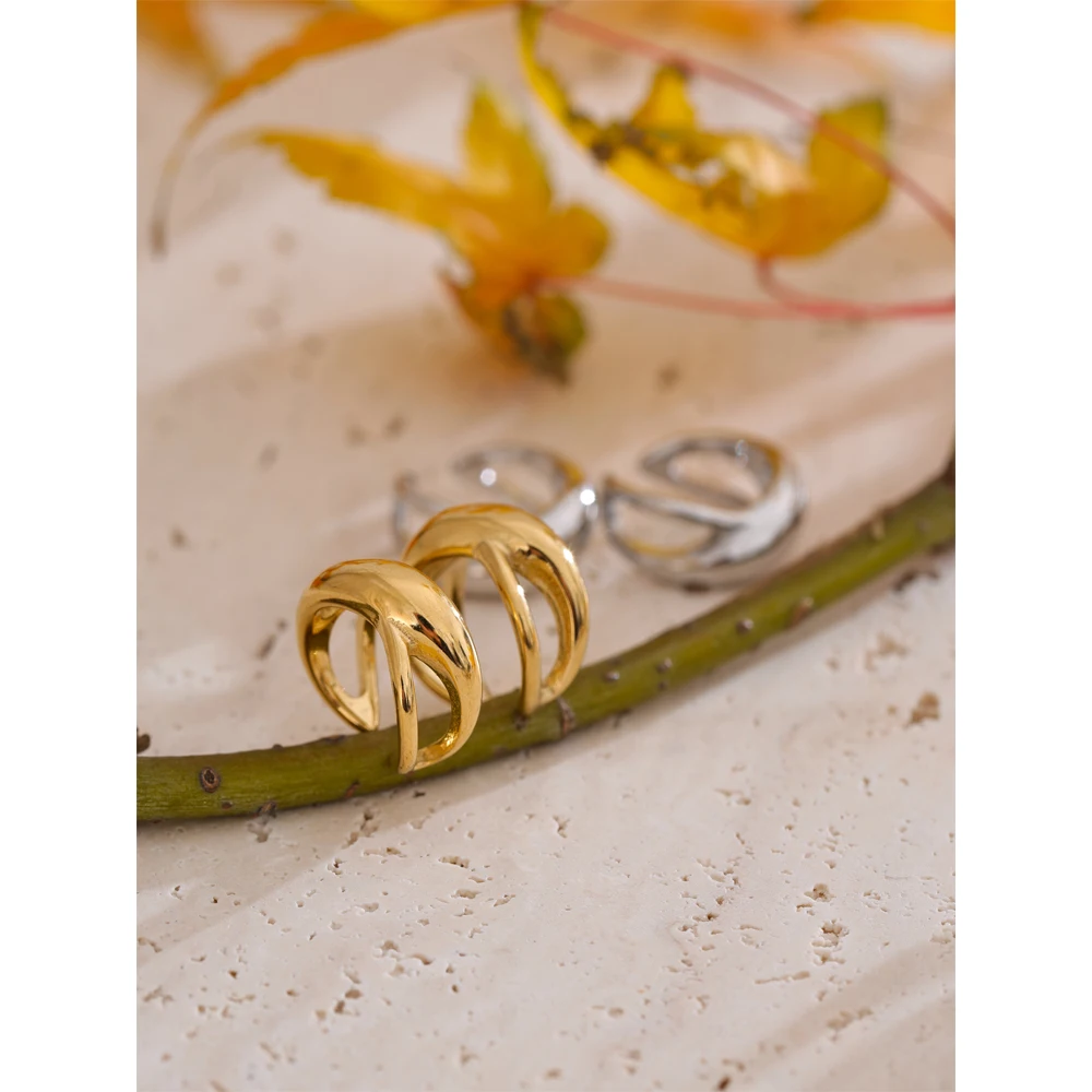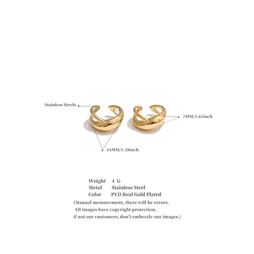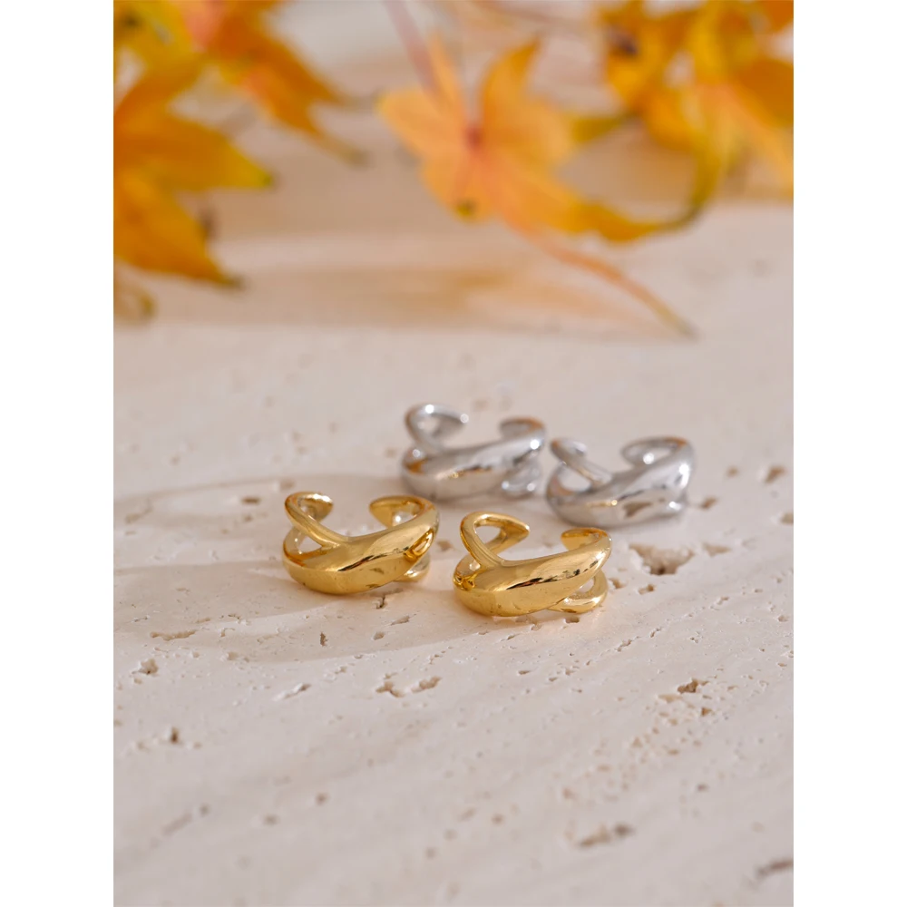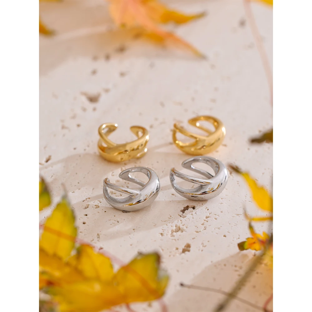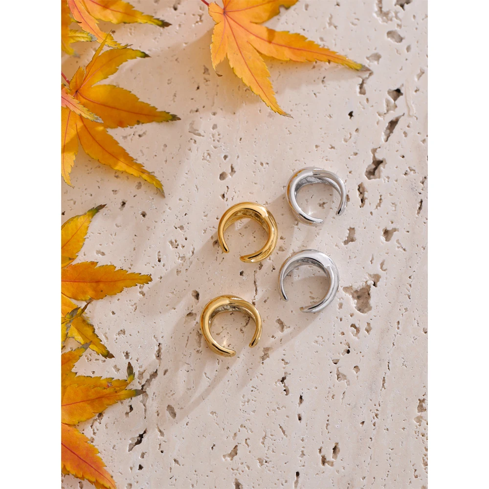 Yhpup Orecchini a clip per orecchio geometrici in metallo liscio in acciaio inossidabile 316L Texture impermeabile Gioielli minimalisti per osso dell'orecchio regolabile