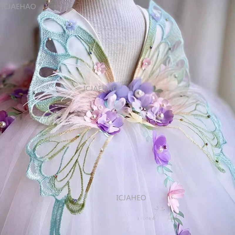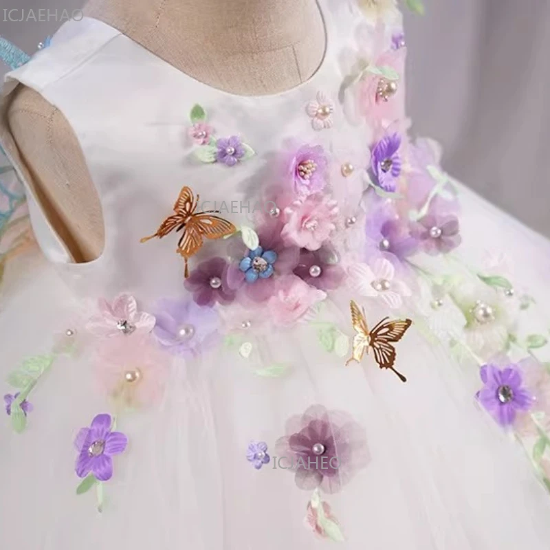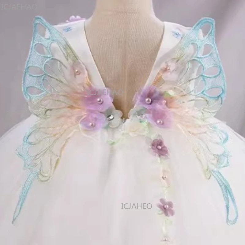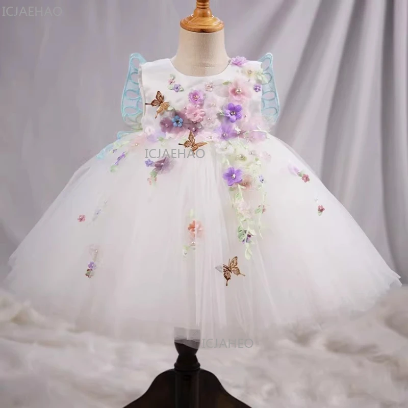 Abito Bianco Gonfio per Primo Compleanno Bambina 2026, Vestito da Cerimonia per Matrimonio, Costume da Festa, Abito da Principessa per Bambini, Vestito Floreale per Bambine