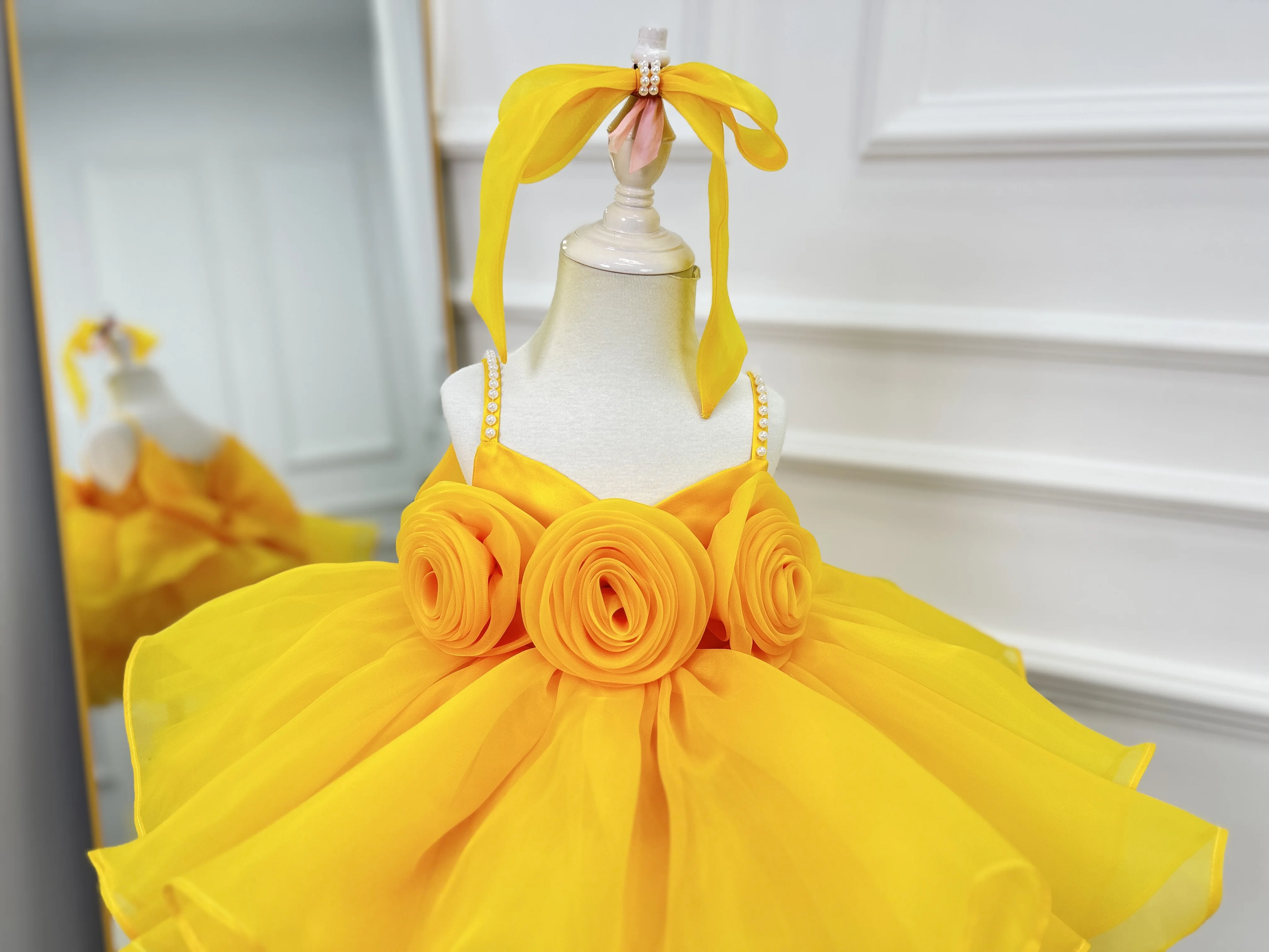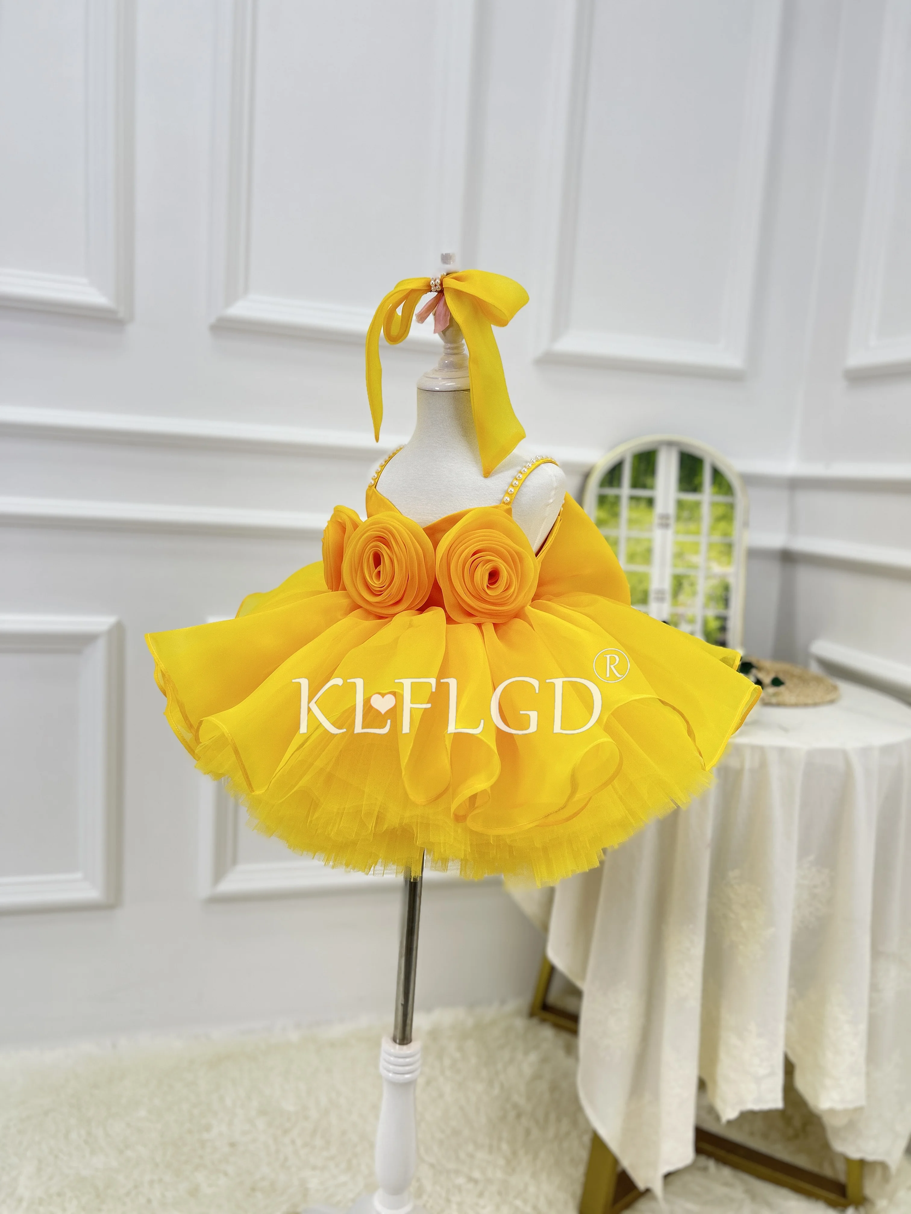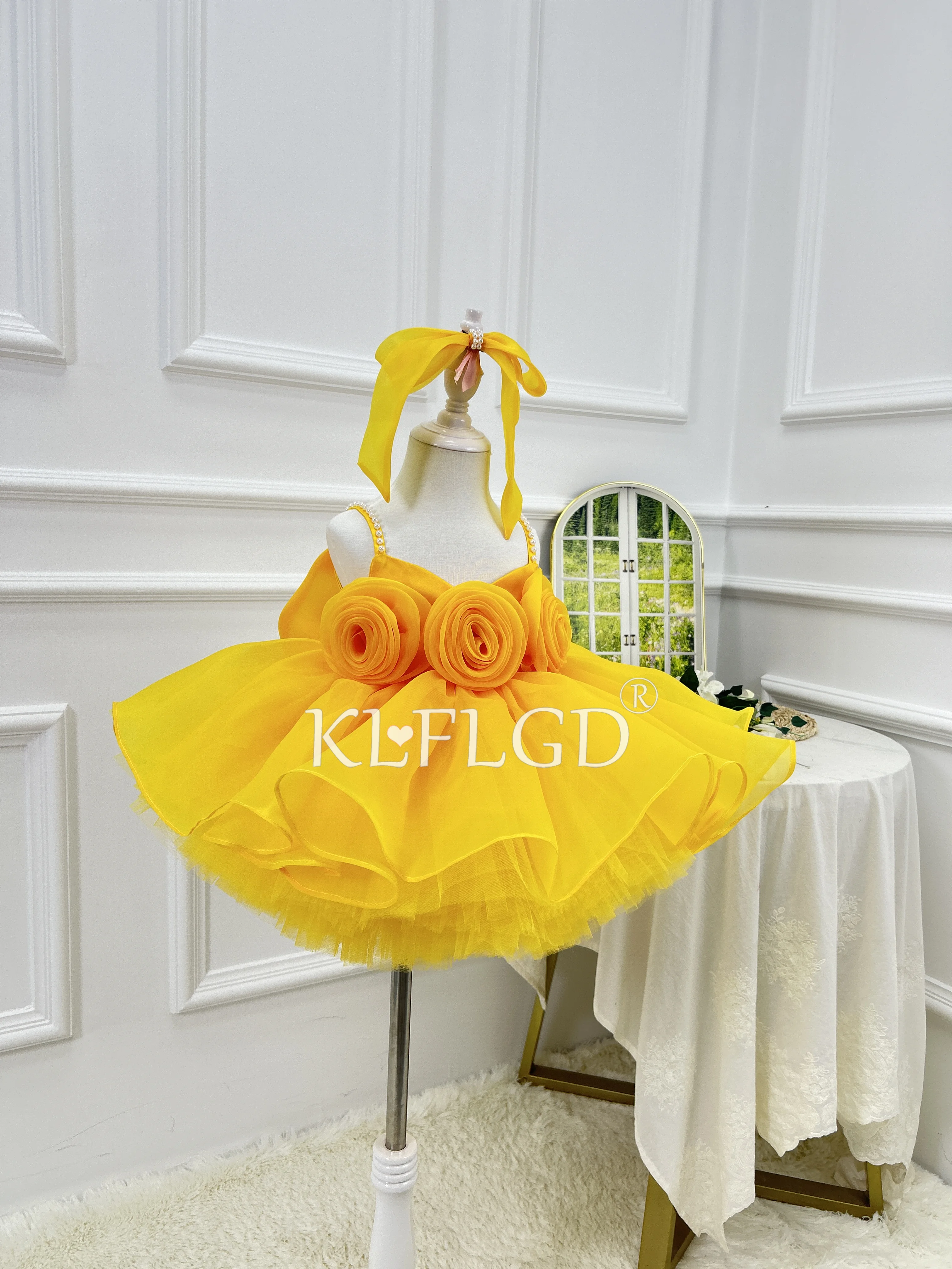 Abito da spettacolo per bambina Abito da ragazza di fiori con paillettes a farfalla per bambine Abito per occasioni speciali Abito da ragazza giallo