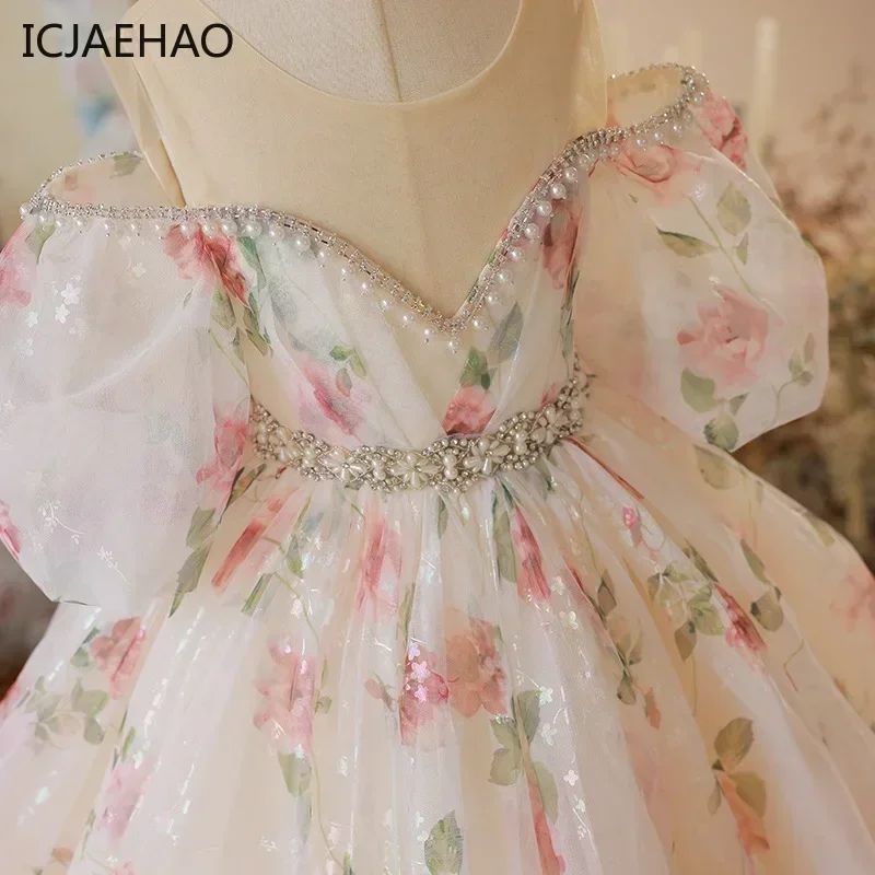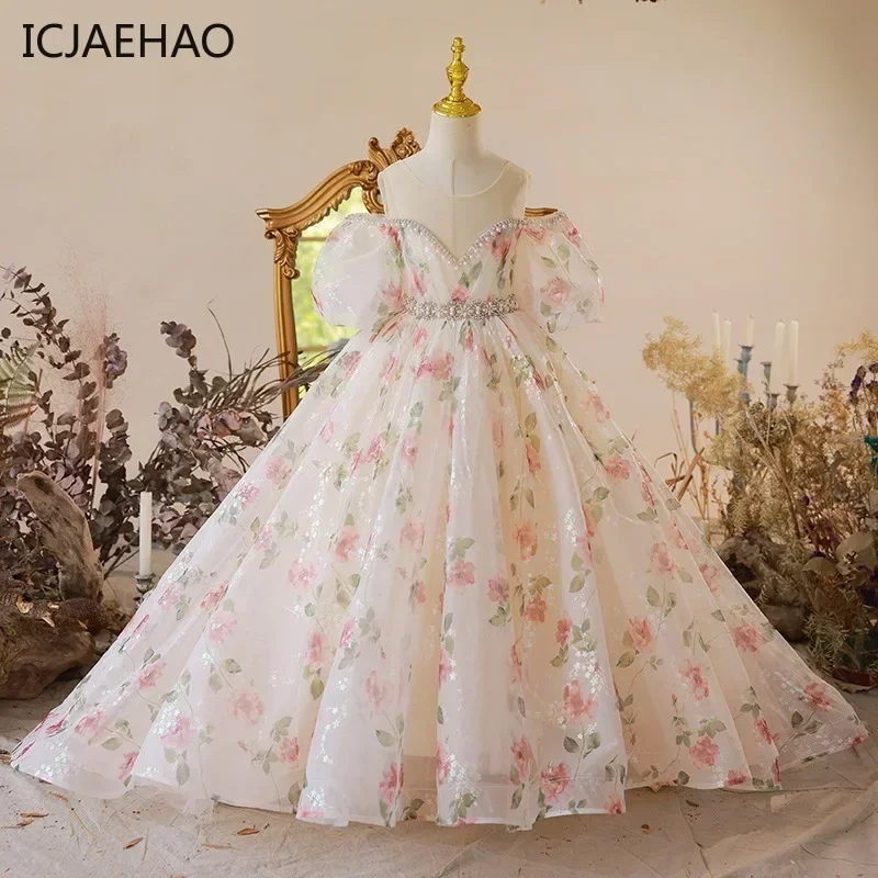 Abito Floreale per Bambina per Matrimonio, Festa, Ballo, Cerimonia, Vestito Lungo Vintage da Sera per Damigella