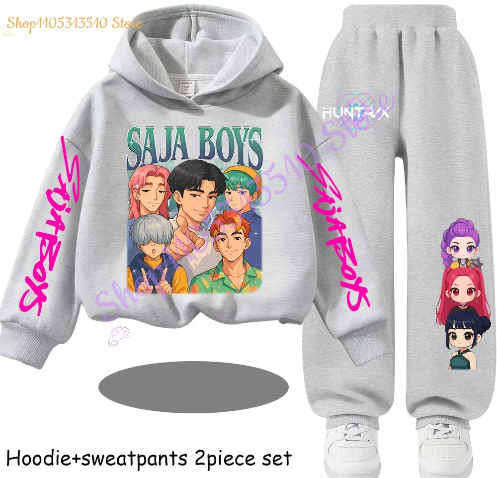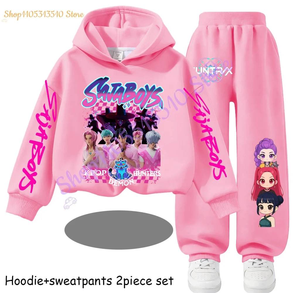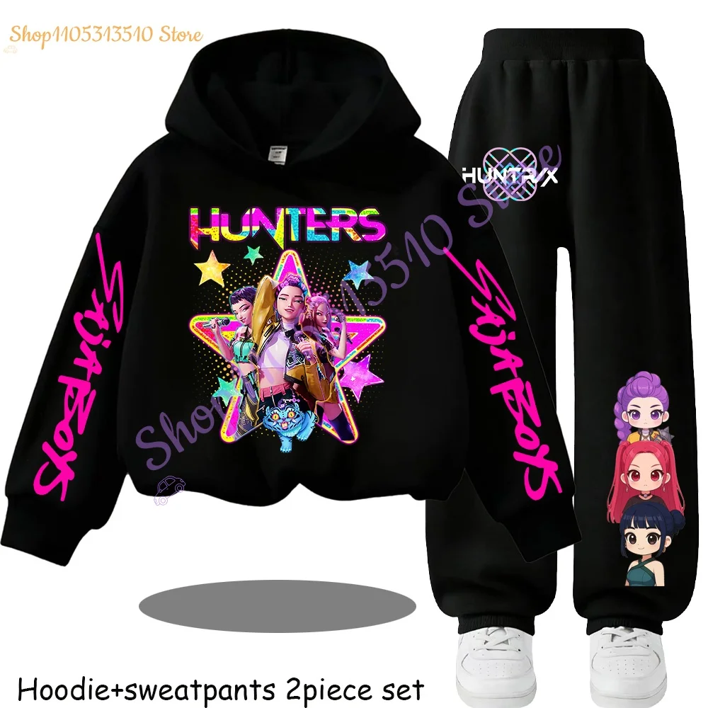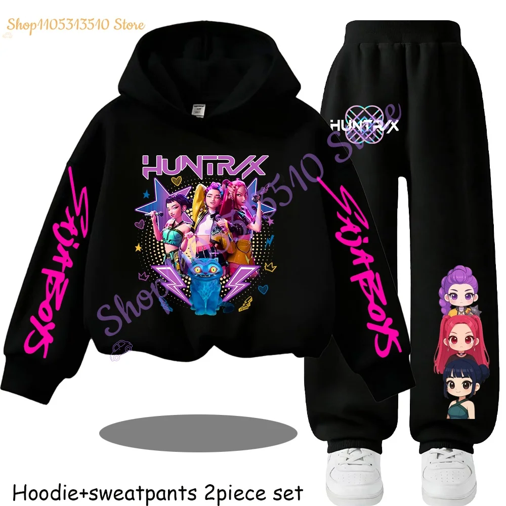 Felpa con Cappuccio Nera per Bambini, Set Sportivo KPop Demon Hunters per Ragazze, Top e Pantaloni per Bambine, Completo Casual Alla Moda