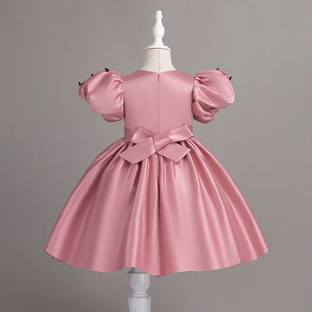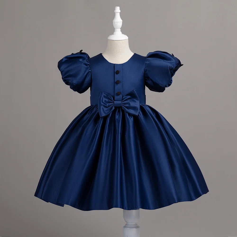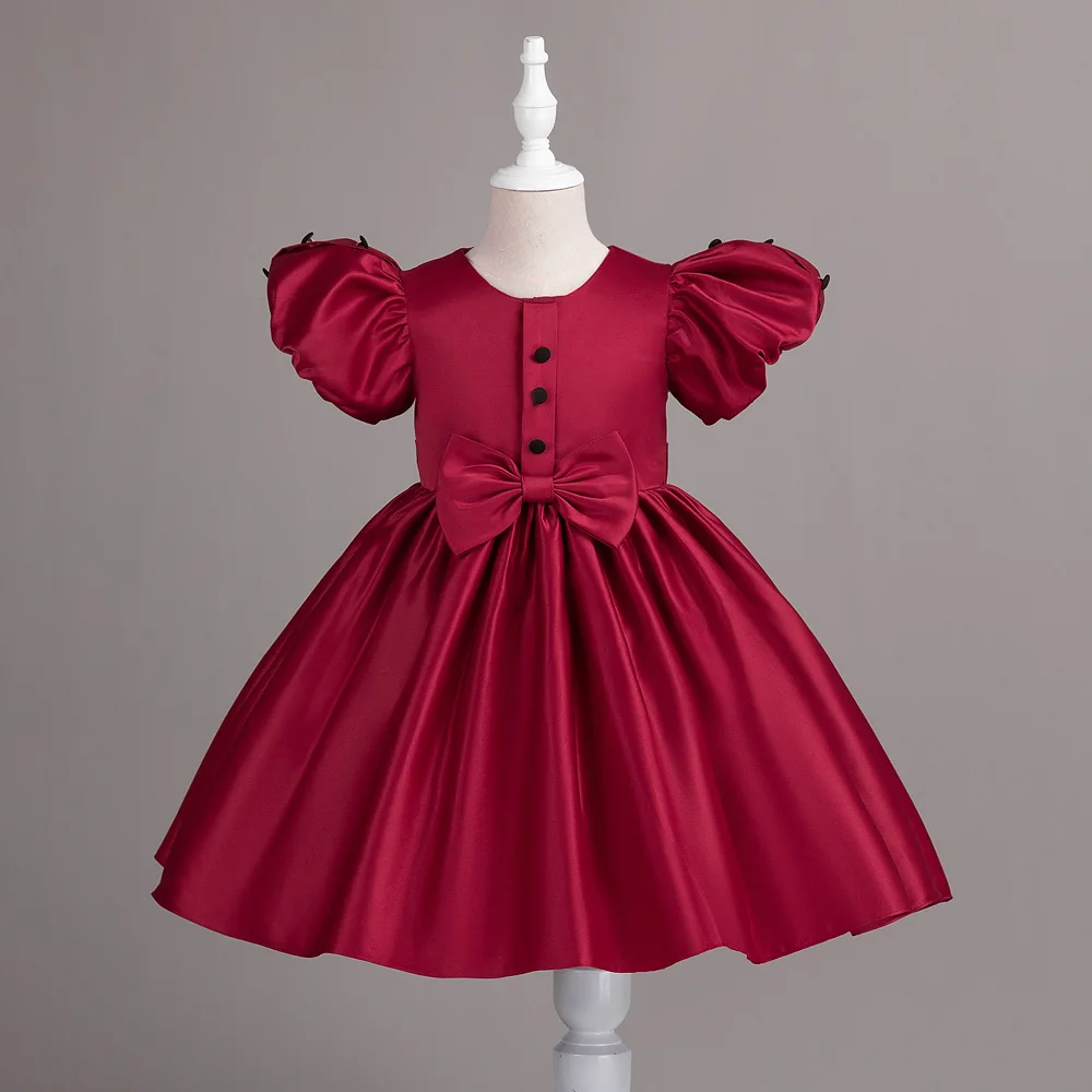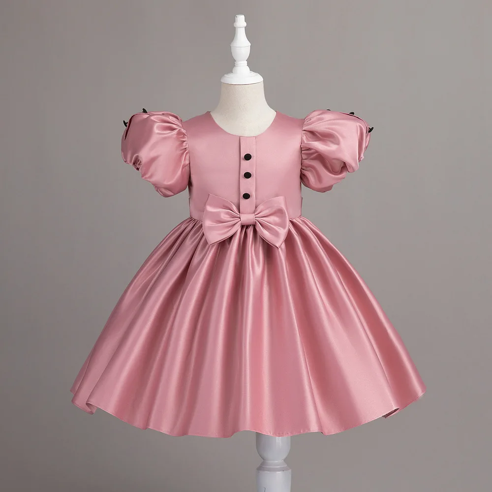 HETISO Neonate Vestono Solido Bambini Festa Principessa Abiti in Raso Manica Corta Bottoni Festivo Laurea Compleanno Abito da Ballo