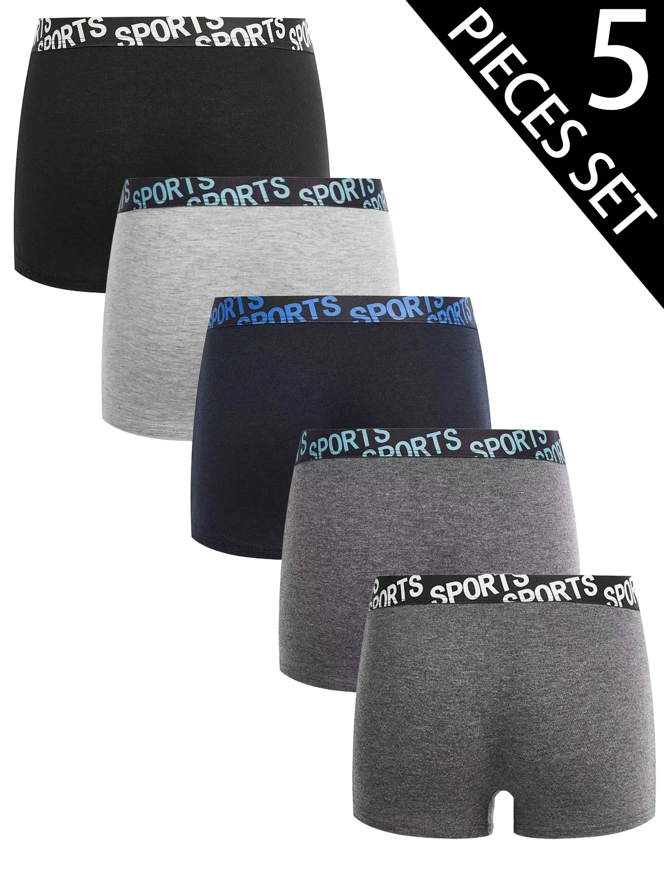 Set da 5 pezzi Intimo comodo e traspirante con cintura larga per ragazzi 8-12 anni Boxer per studenti Slip piatti per ragazzi