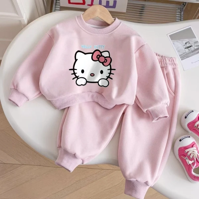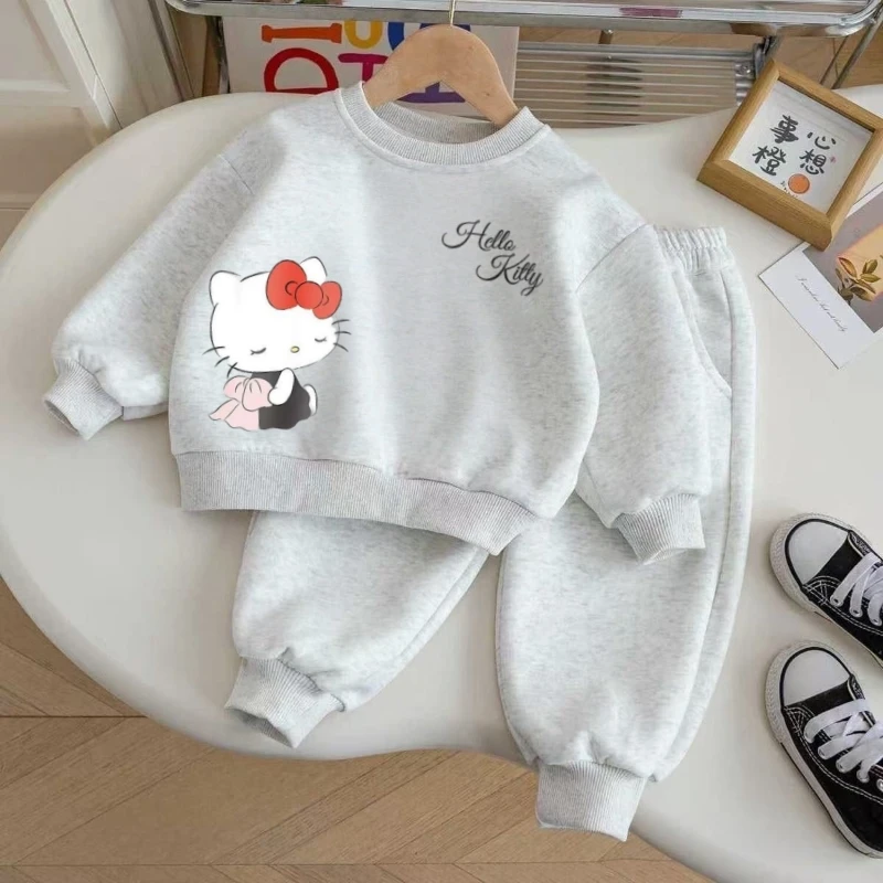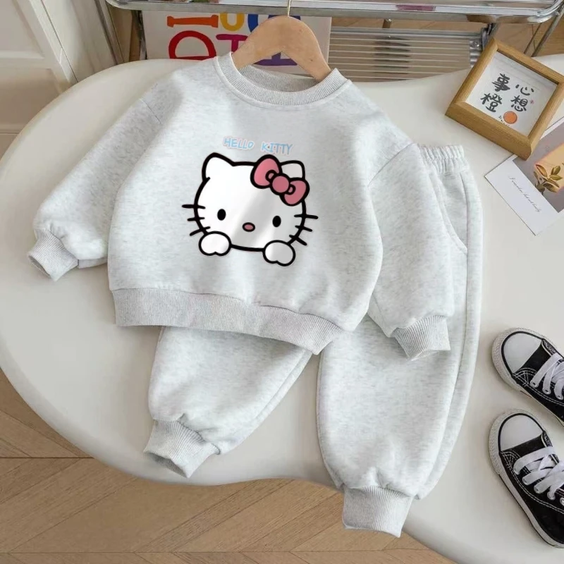 Set di vestiti per neonata Autunno Kid Hello Kitty Felpe stampate Pullover Top e pantaloni 2 pezzi Tute dolci per bambini