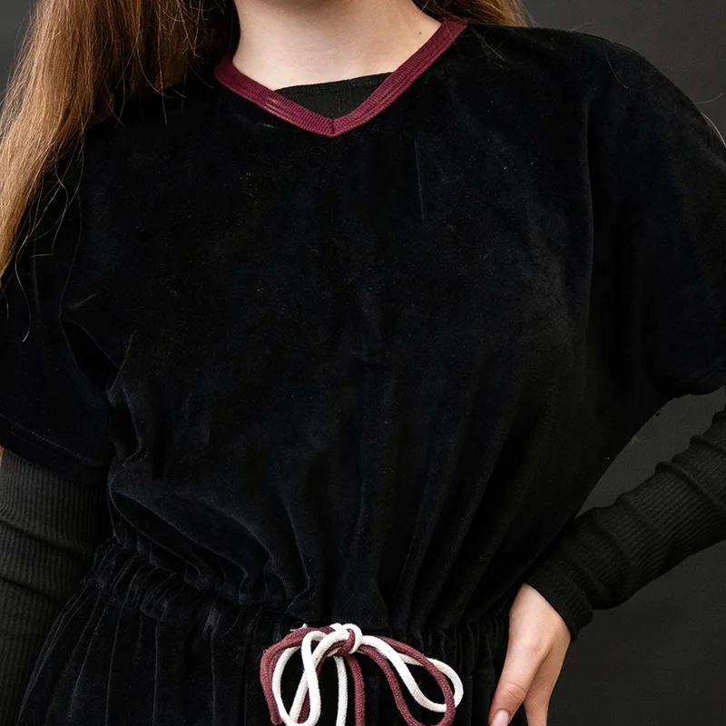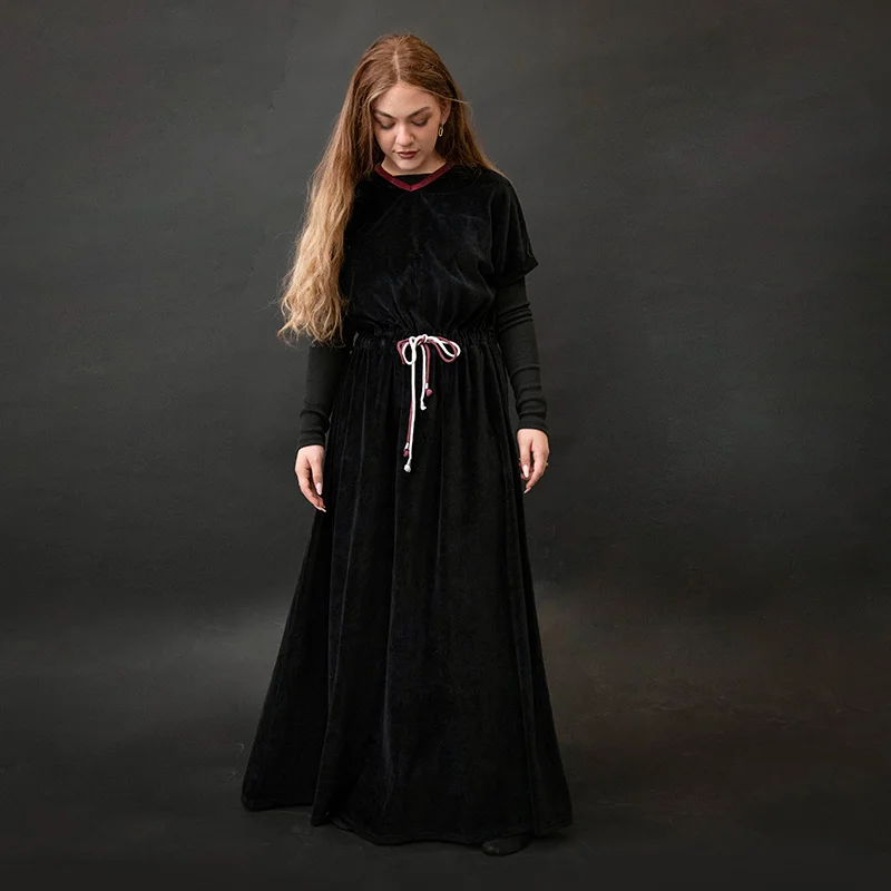 Shabbos abito adolescente/donna abito invernale maniche corte abbigliamento vita 2 corde per ragazze abito in velluto nero taglie XS-XXXL