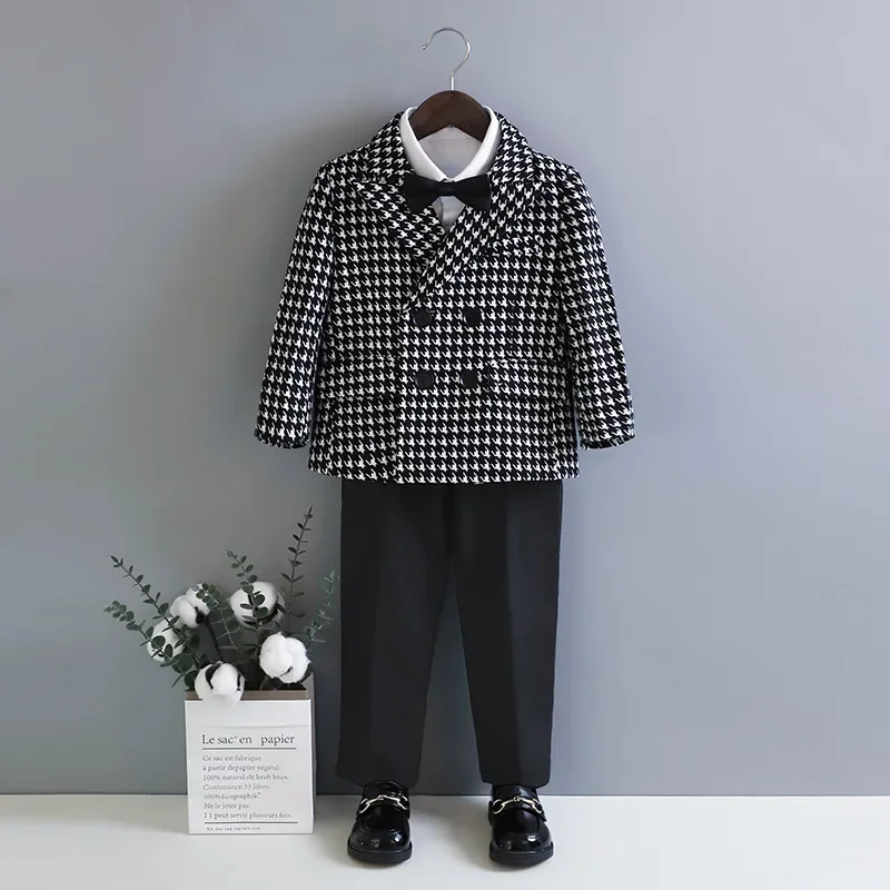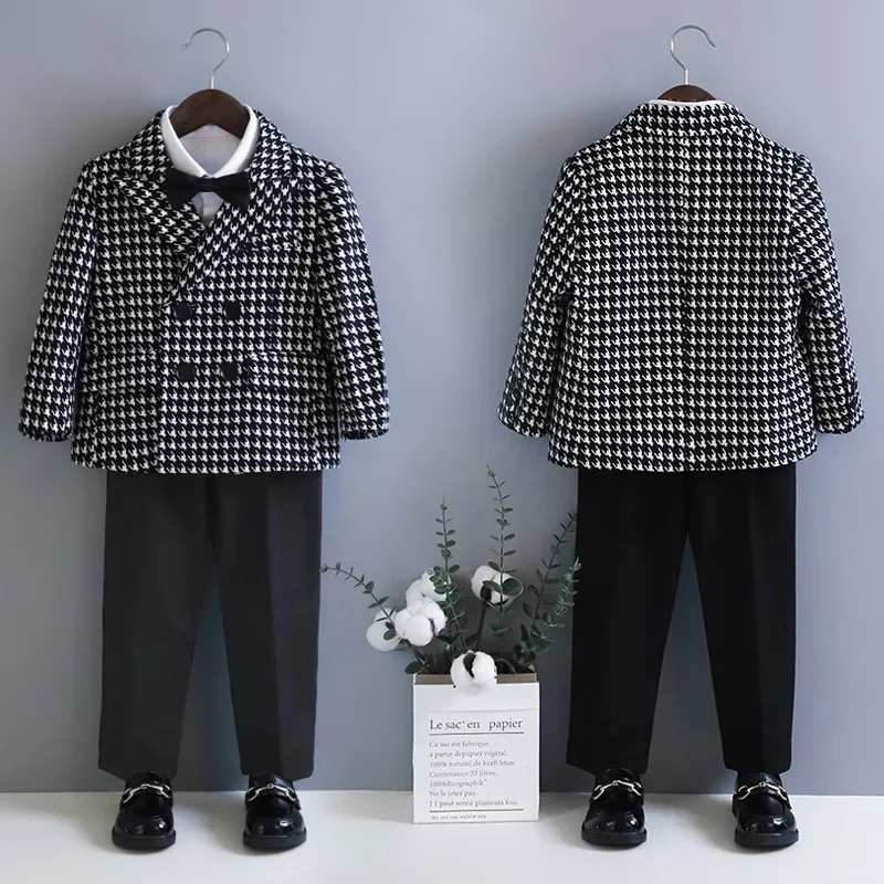 Uniforme Scolastica per Ragazzi Primavera 2026, Stile Britannico a Quadri, Completo per Compleanno Bambini 2-10 Anni, Set Blazer per Cerimonie