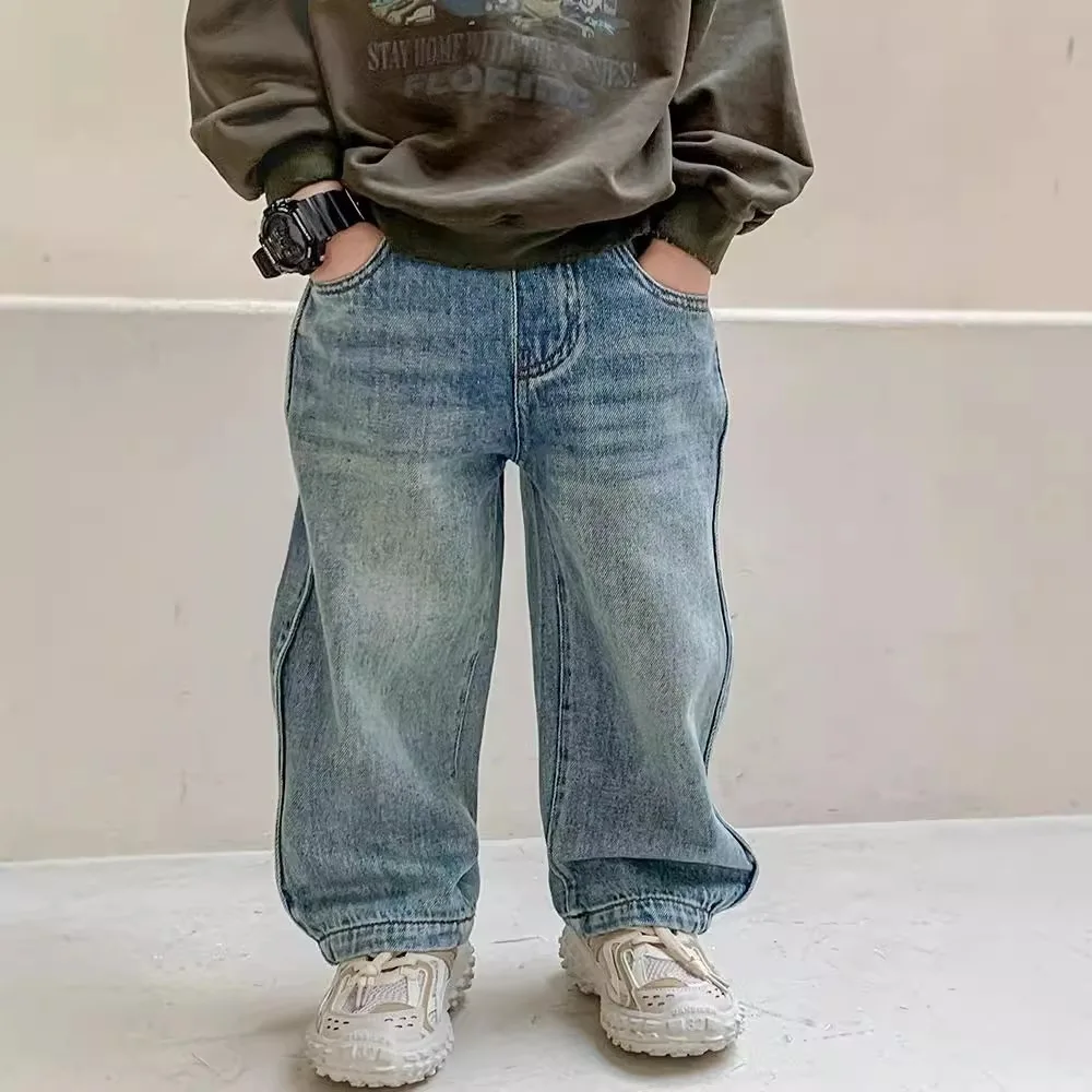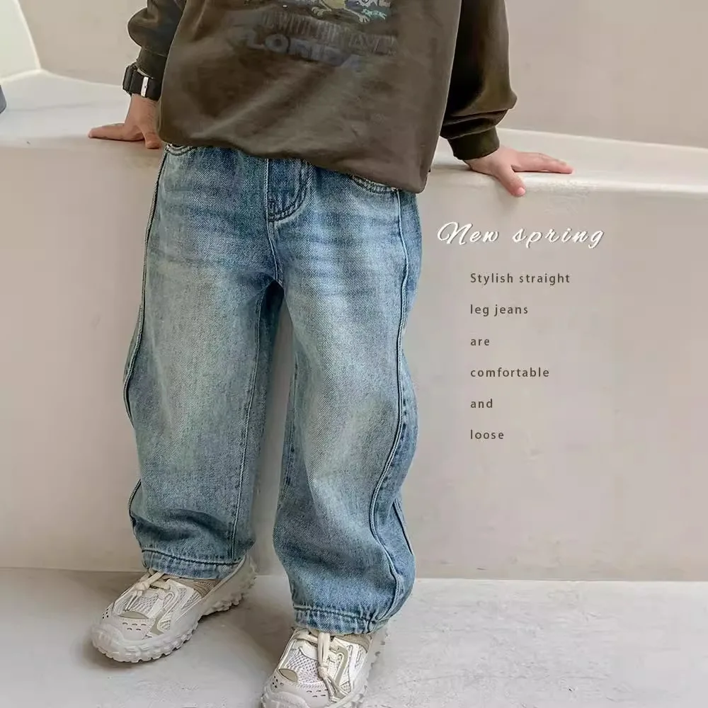 UNITIM Jeans Primaverili per Bambini, Pantaloni in Denim Retrò per Ragazzi 2-10 Anni, Pantaloni Casual Versatili per Neonati e Bambini