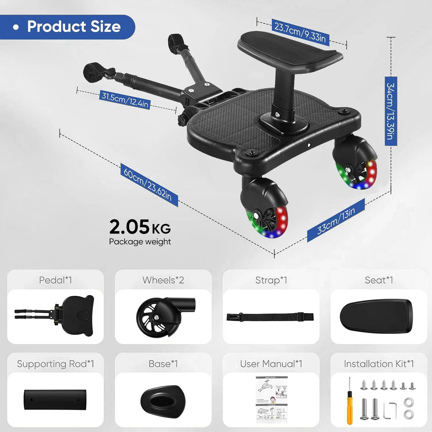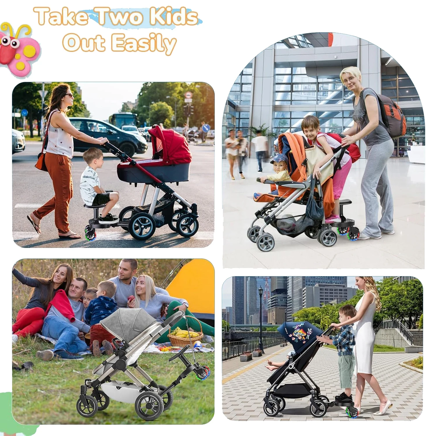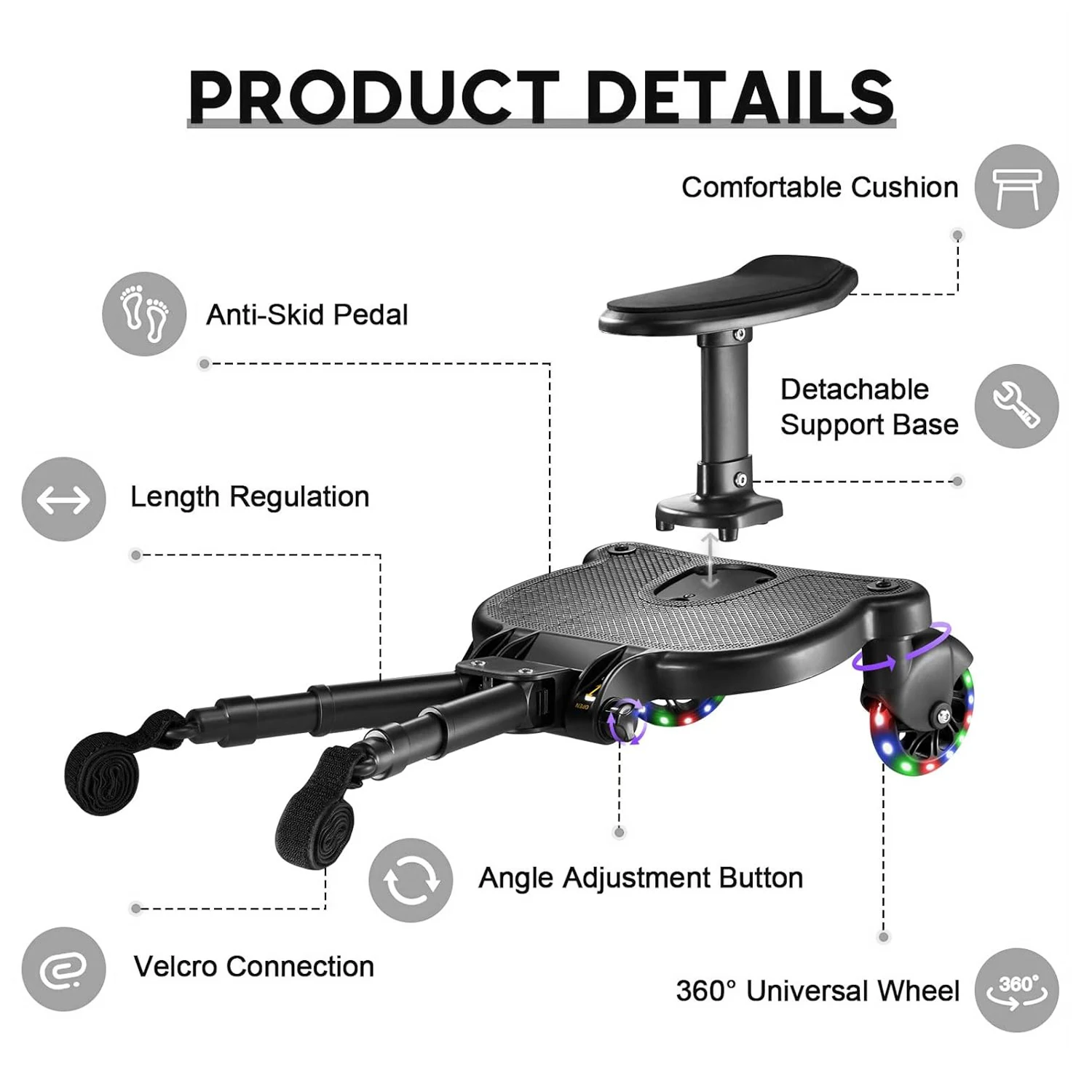 Scheda passeggino universale standard con pedale sedile staccabile e ° Pannelli per bambini in acciaio Pannello carico 25 kg realizzato per la maggior parte dei passeggini