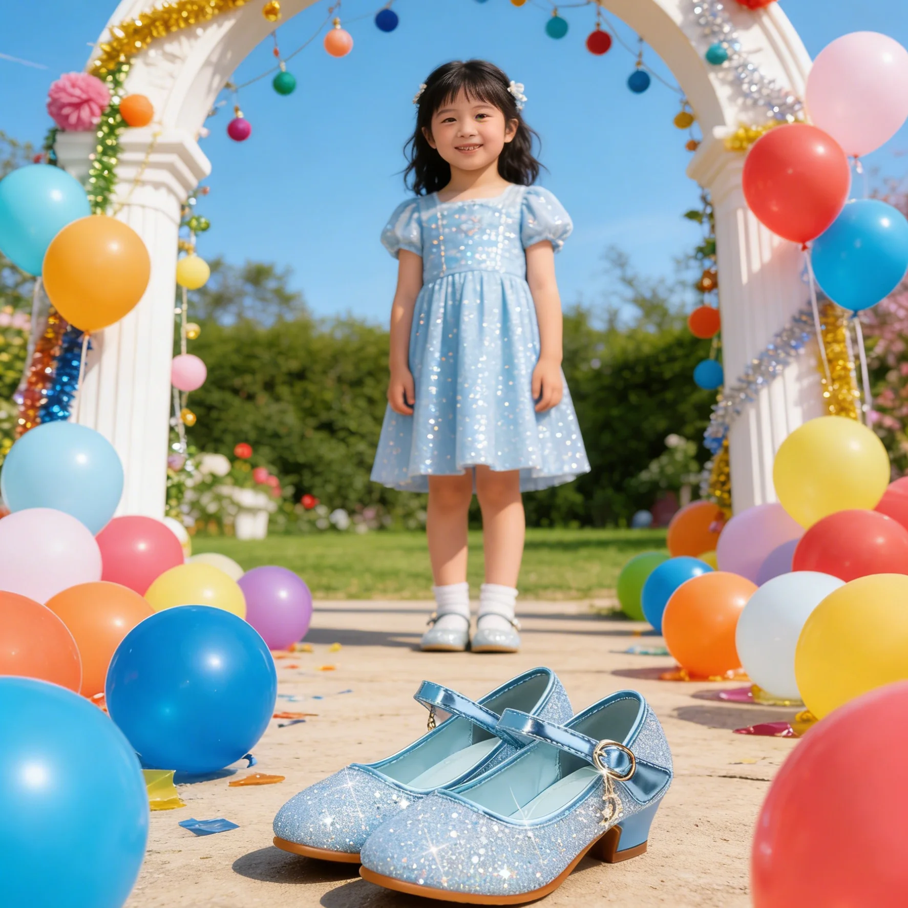 Scarpe casual per bambini Scarpe da principessa in pelle PU con paillettes Scarpe primaverili per ragazze antiscivolo Scarpe con suola morbida blu argento taglia 26-35