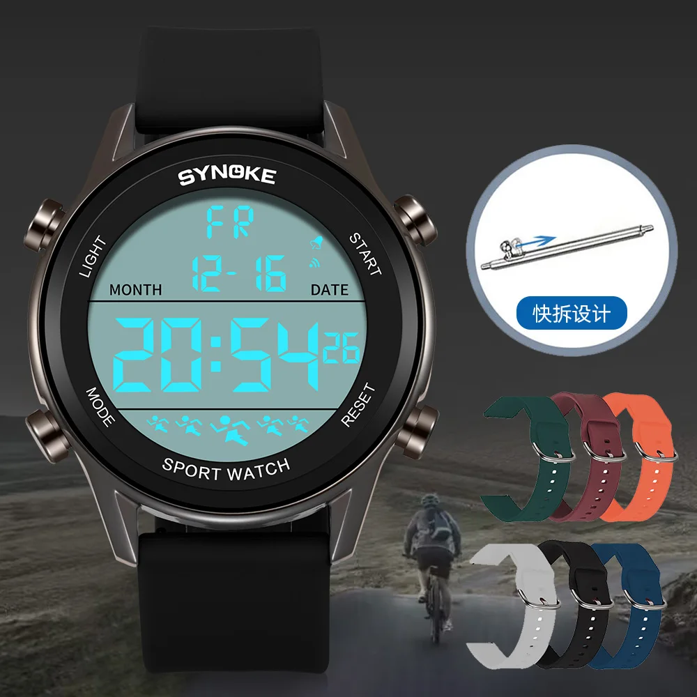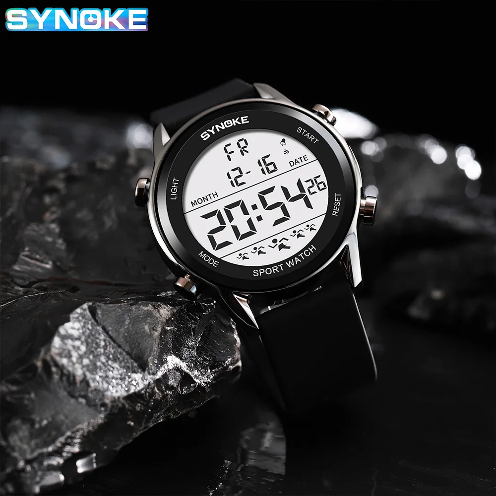 SYNOKE Men Outdoor Sports multifunzionale impermeabile Display a grande schermo luminoso LED digitale per orologio in silicone moda uomo