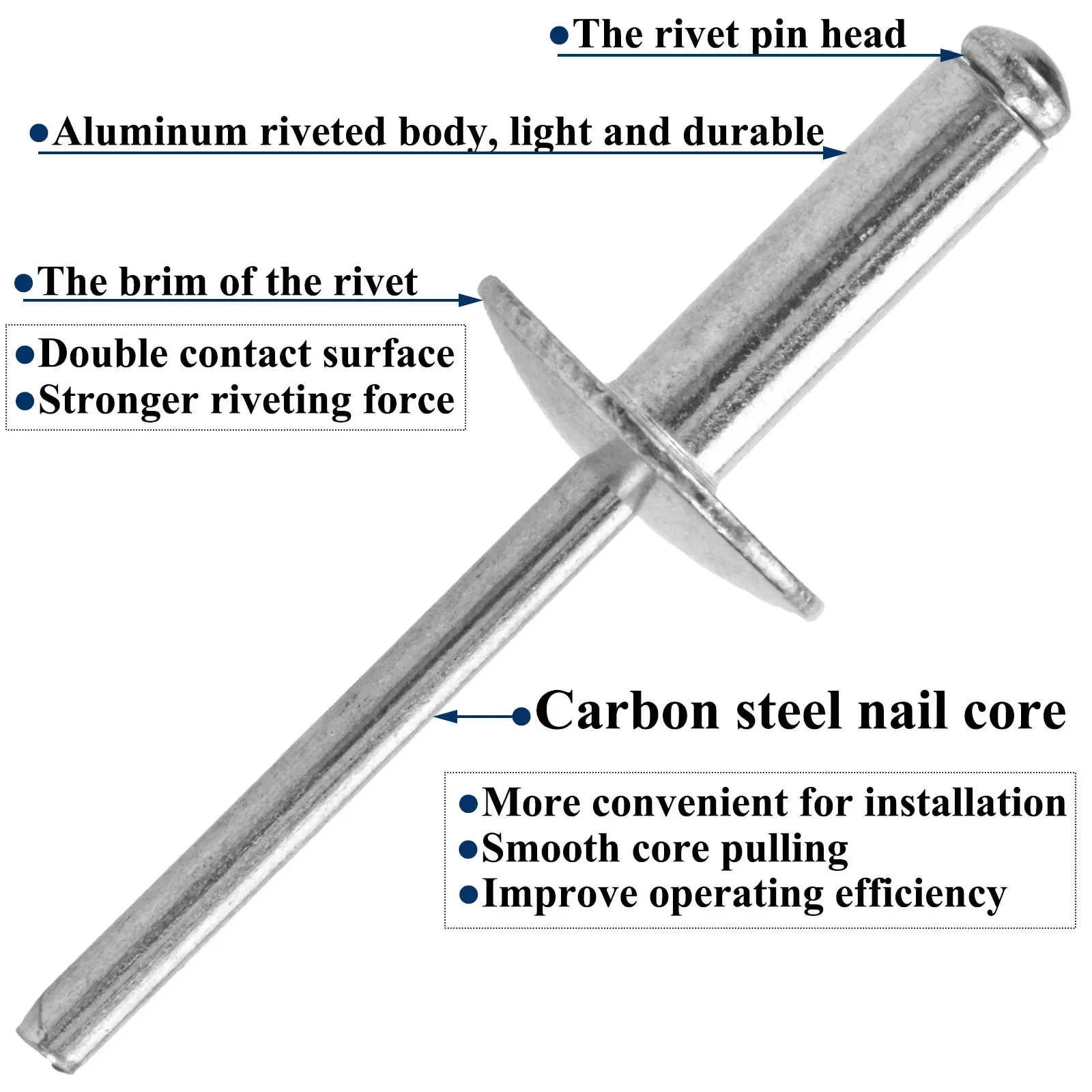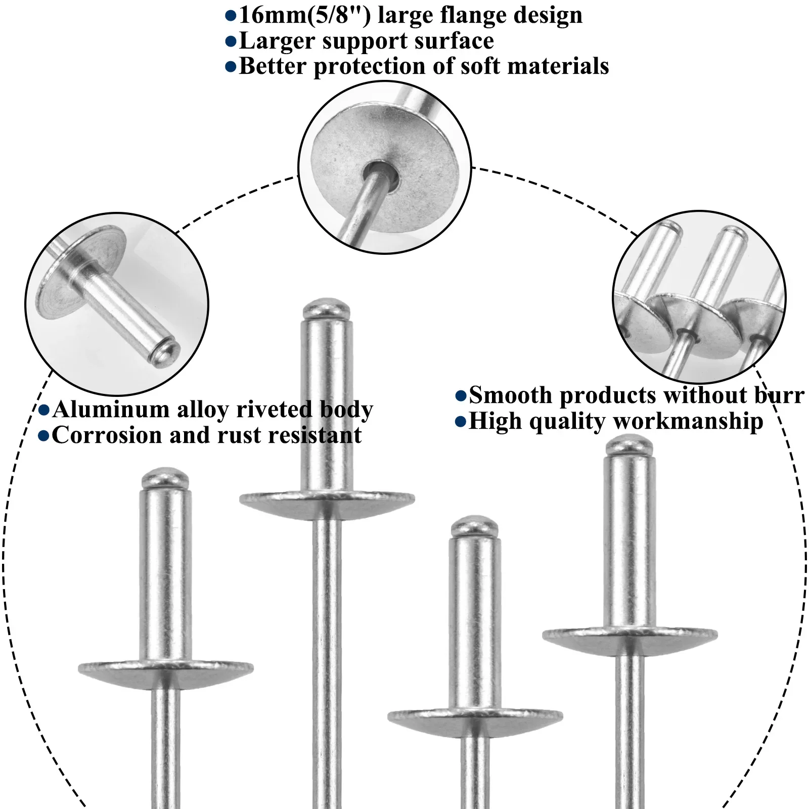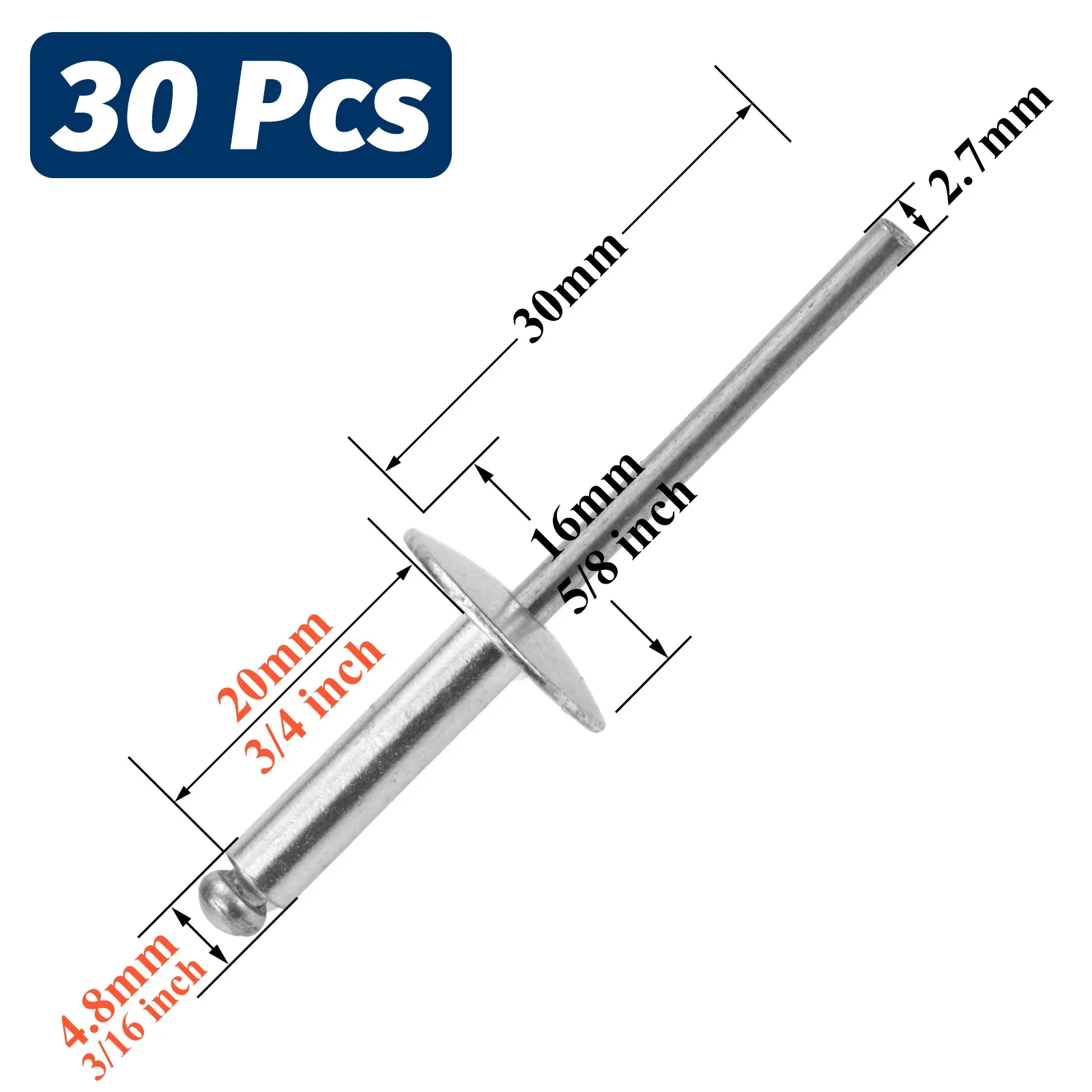30 Pezzi di Rivetti Ciechi con Flangia Grande, Kit Assortito di Rivetti Pop in Alluminio, Diametro Flangia 5/8\" (16 mm)
