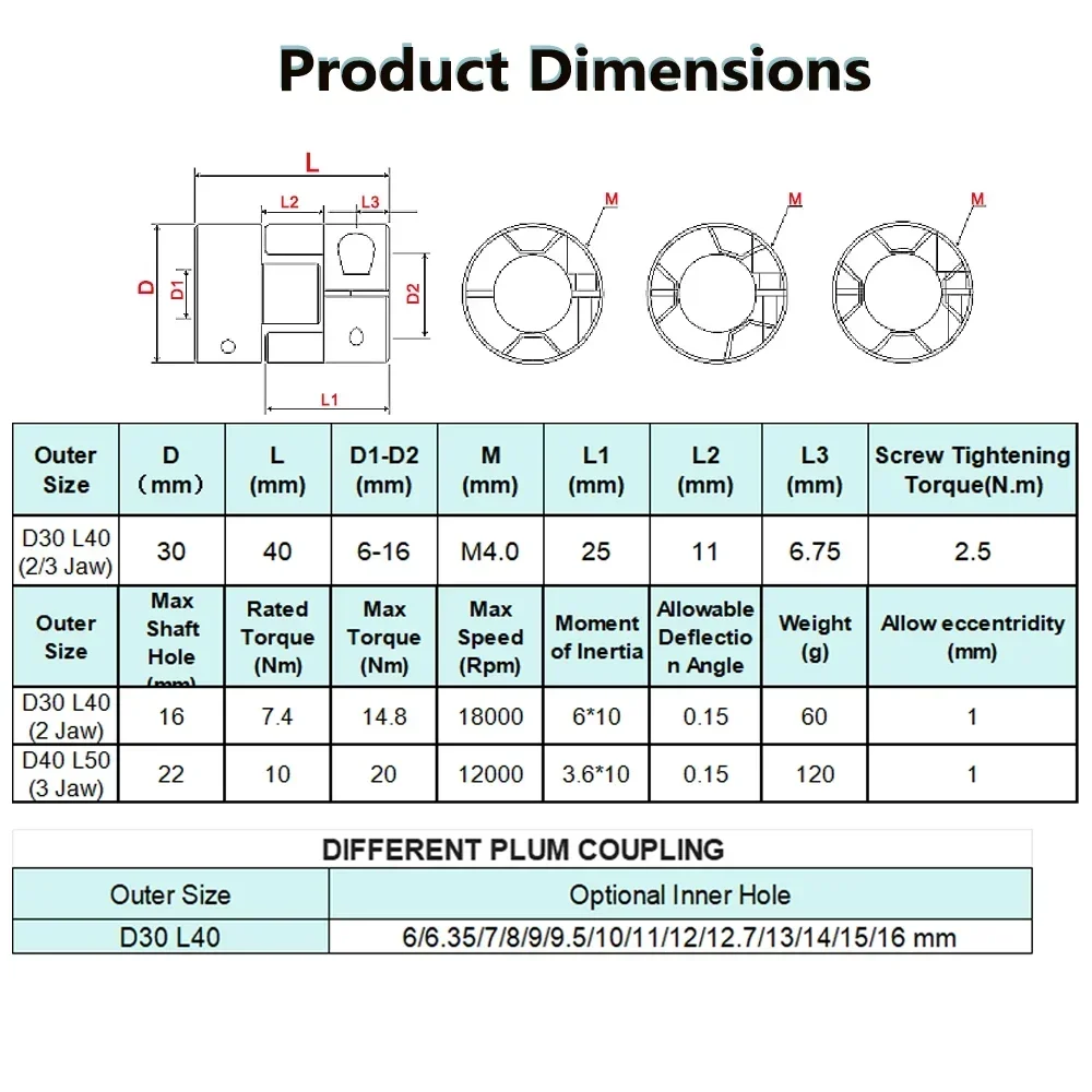 Giunto Flessibile a Morsetto con Foro Interno 6mm-14mm, Accoppiamento D30L40 per Motore CNC, Frizione, Macchina per Incisione, Connettore Motore