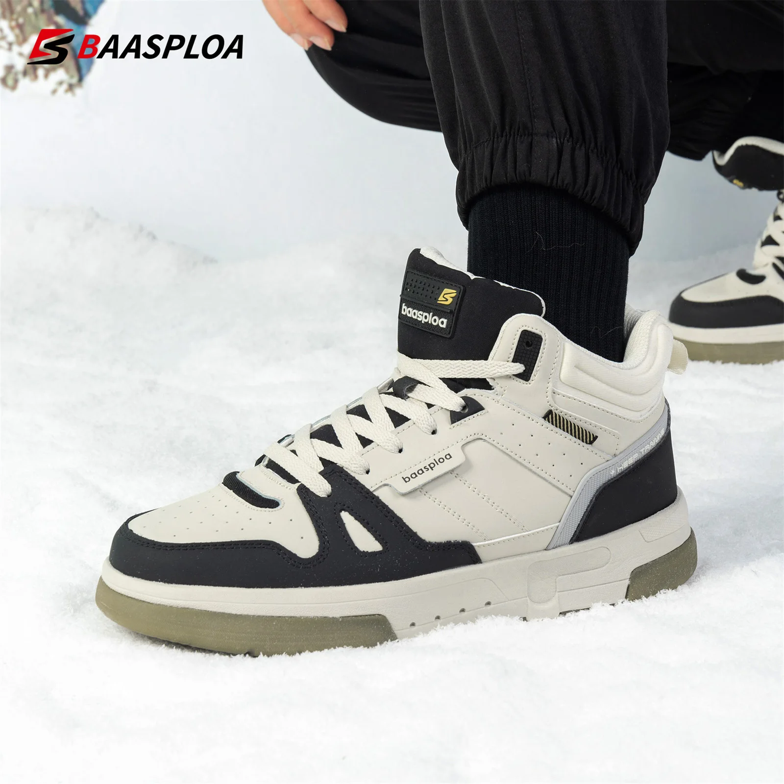 Baasploa Scarpe da uomo in cotone Comfort invernale Peluche Scarpe casual calde per uomo Moda Scarpe da ginnastica casual alte antiscivolo da esterno maschile