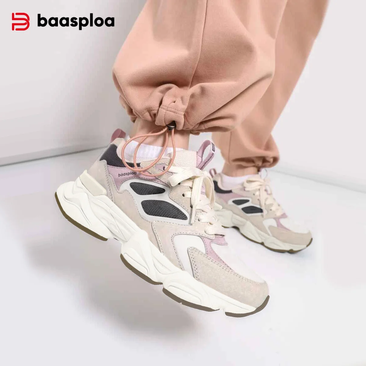 Baasploa Sneakers da Passeggio per Donna, Scarpe Casual in Pelle e Mesh, Calzature Sportive Monocolore alla Moda, Antiscivolo con Rialzo