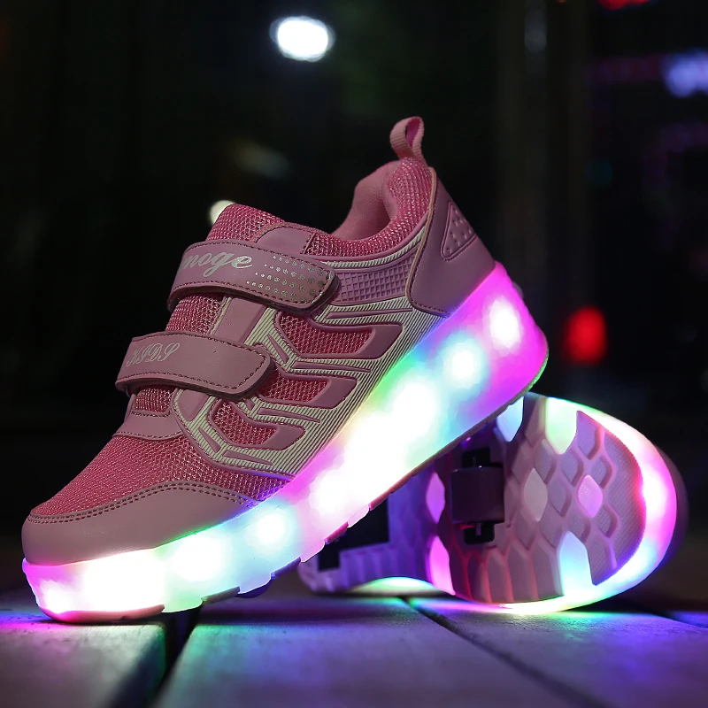 Scarpe da ginnastica a rotelle per esterni sicure e durevoli Scarpe da pattinaggio per bambini Scarpe a rotelle per bambini Scarpe illuminate a LED ricaricabili