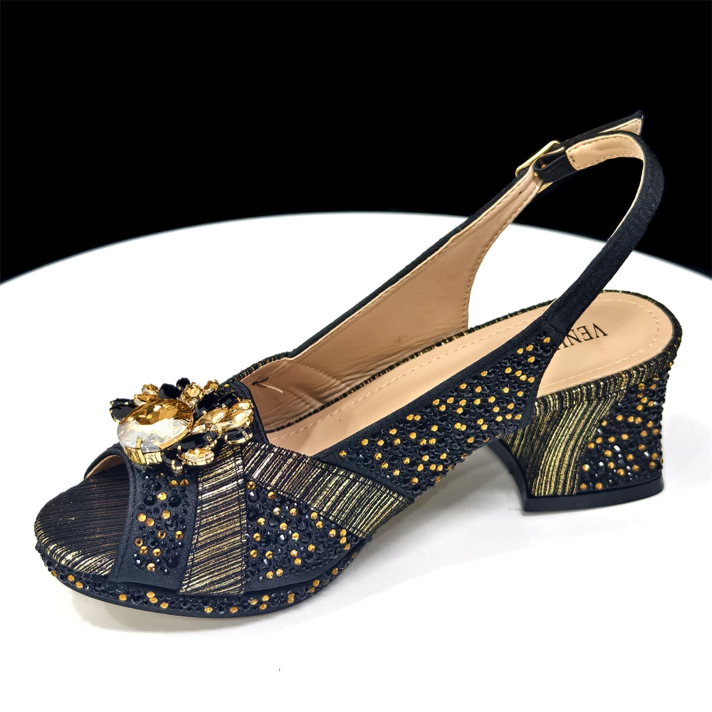 2025 Lussuoso set di scarpe e borse da festa da donna italiane – Eleganti sandali con tacco alto aperti con strass neri per matrimoni