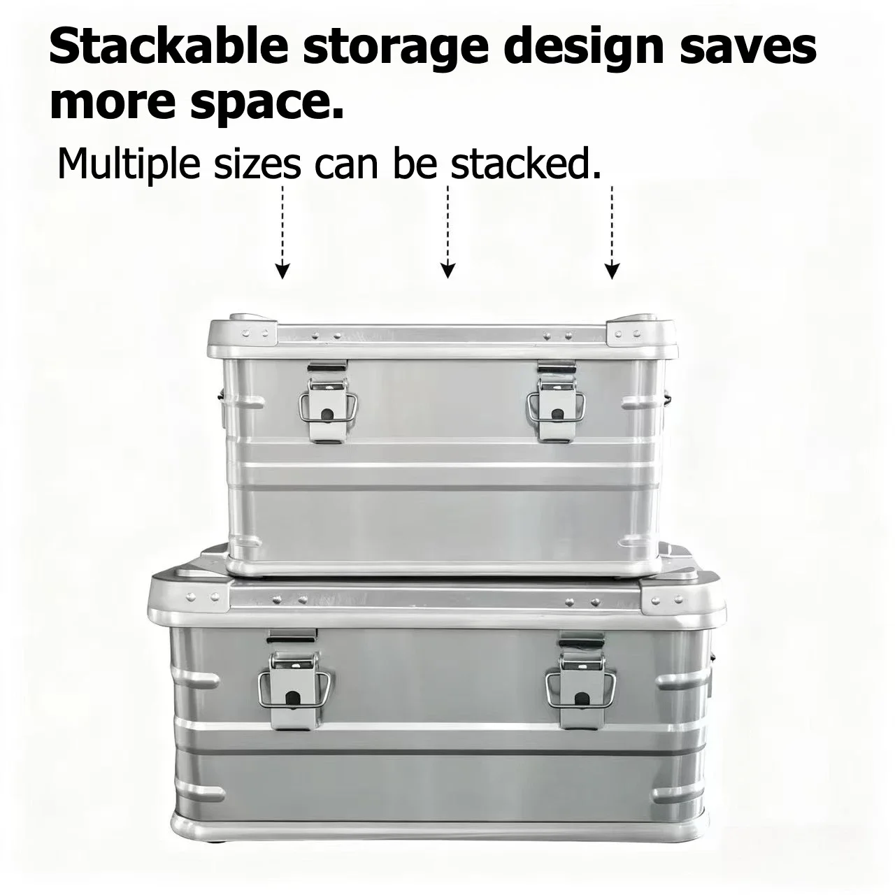 Scatola Portaoggetti in Lega di Alluminio 30L 50L 80L, Contenitore Argento per Campeggio, Casa, Auto, Picnic, Viaggi e Attività all'Aperto