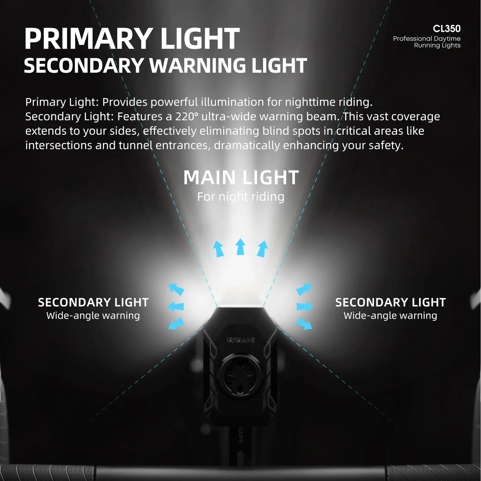Faro per Bicicletta CYCLAMI CL350 Compatibile con Garmin XOSS IGPSPORT Magene GPS, Lampada Frontale Ricaricabile 4000mAh con Adattatore Gopro