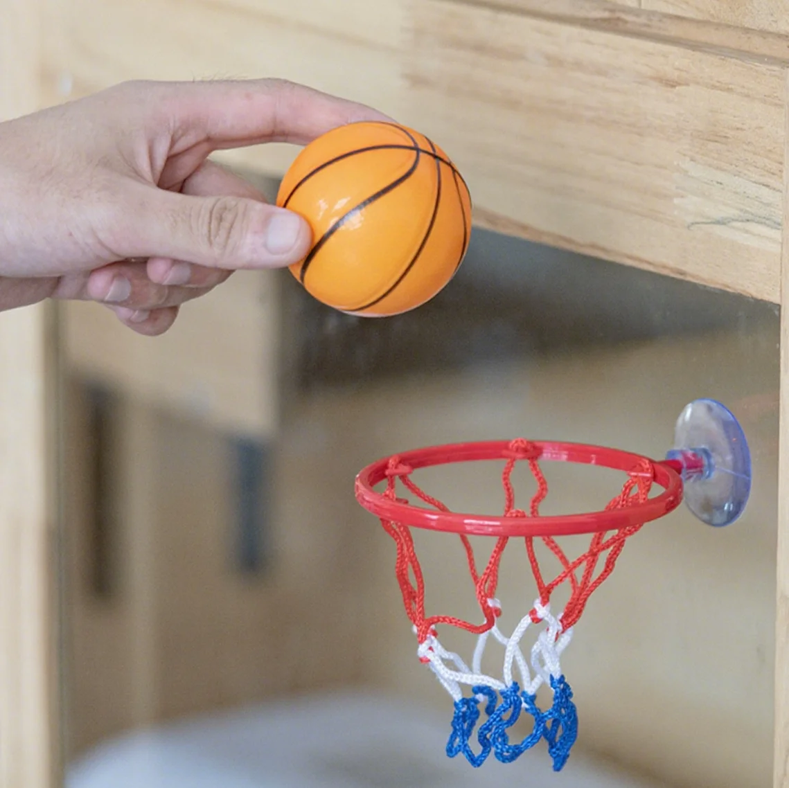 Mini Set da Basket per Coordinazione, Pallina Elastica in Gomma Solida, Gioco da Tavolo Sportivo per Bambini, Giocattolo per Coordinazione Occhio-Mano