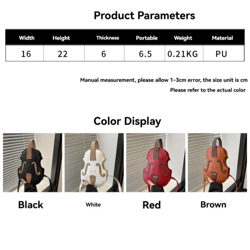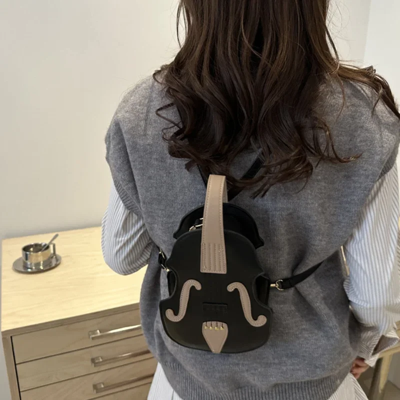 Borsa a Tracolla Creativa a Forma di Violino in Pelle PU, Piccolo Zaino per Donne, Borsa a Spalla Moda Femminile con Dettagli Cuciti
