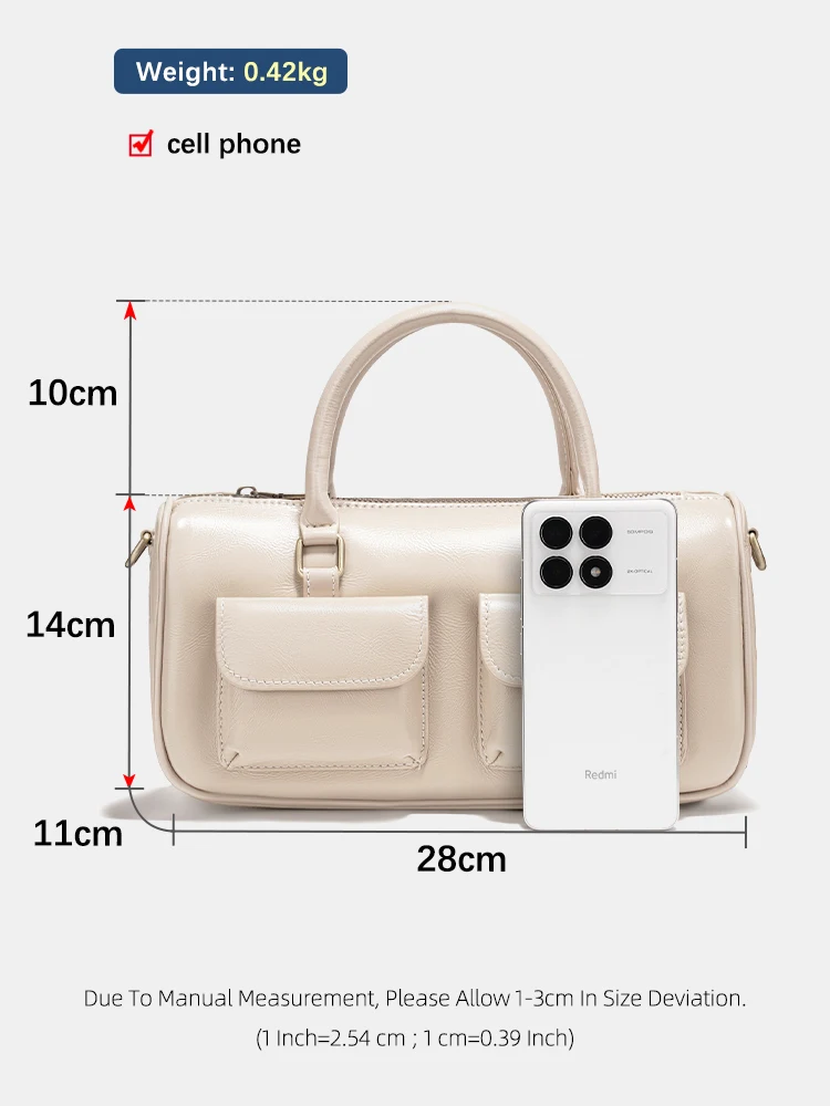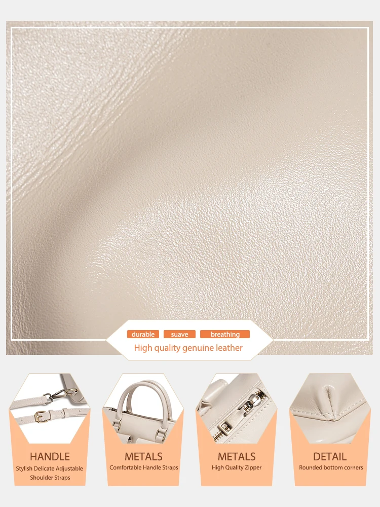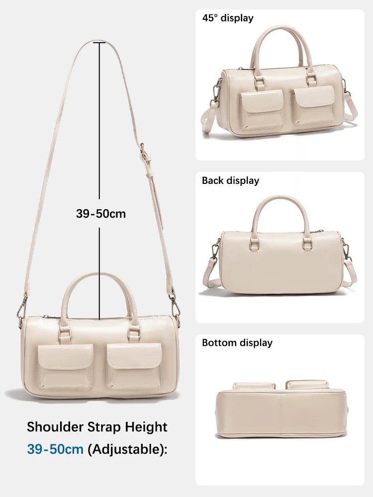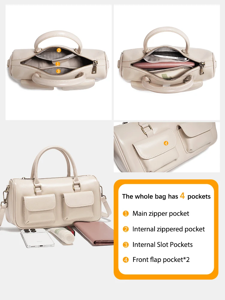 Borsa a tracolla da donna Zency in pelle di vacchetta bianca, borsa a tracolla multifunzionale con tasche frontali per piccoli oggetti