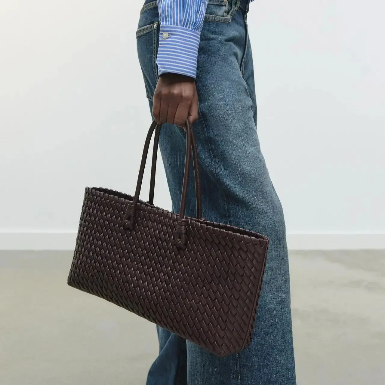 ELONGATED WOVEN SHOPPER BAG Borsa tote alla moda con manico superiore, borse a tracolla da donna Design di lusso per lo stile quotidiano