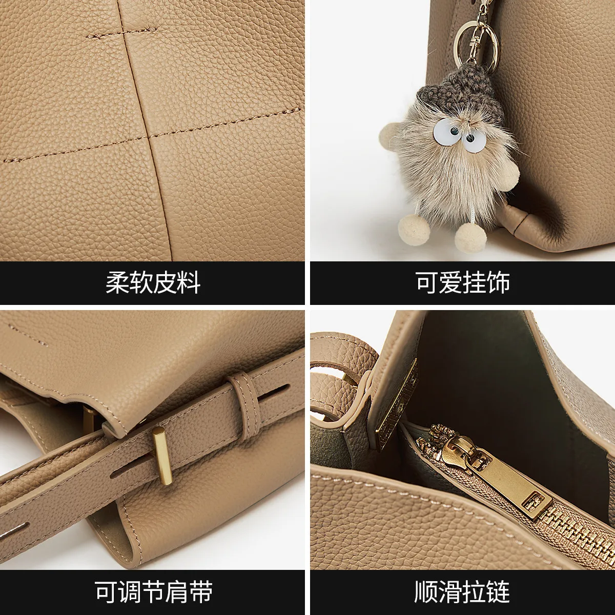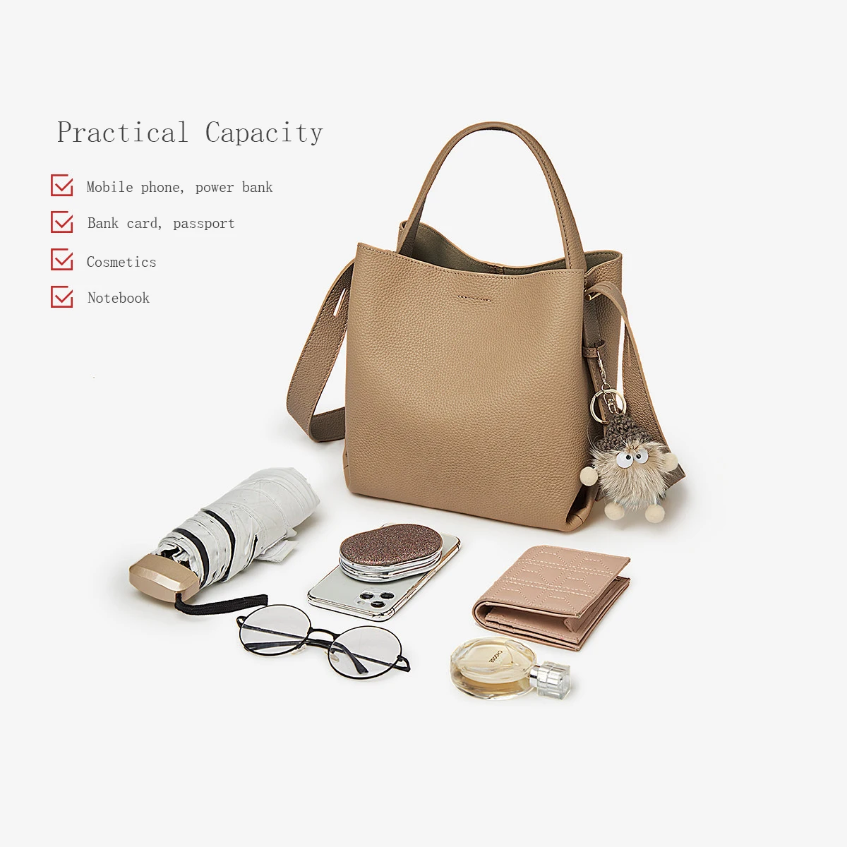 FOXER Borsa a mano semplice in vera pelle Borsa a tracolla da donna Tote Borsa a secchiello Borsa a tracolla femminile di grande capacità Pusre Casual