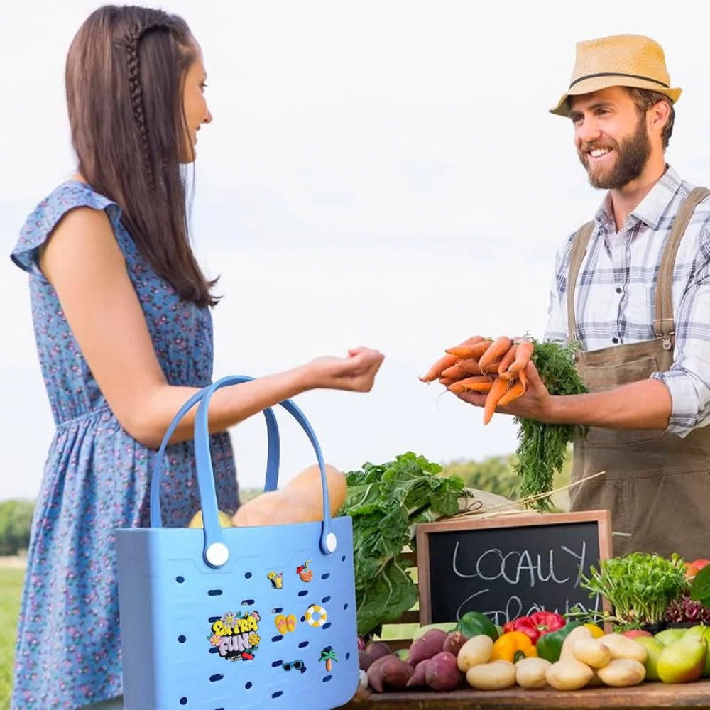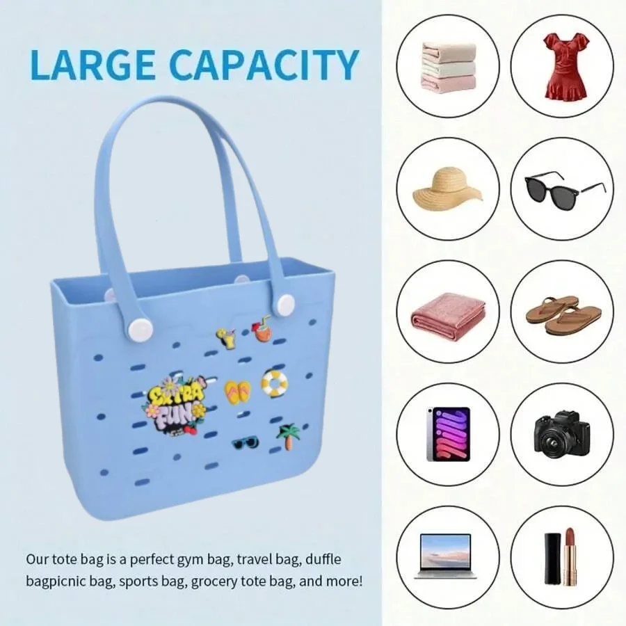 Realizzata in gomma EVA, questa borsa tote offre un'impermeabilità superiore, perfetta per le gite in spiaggia o le giornate piovose.