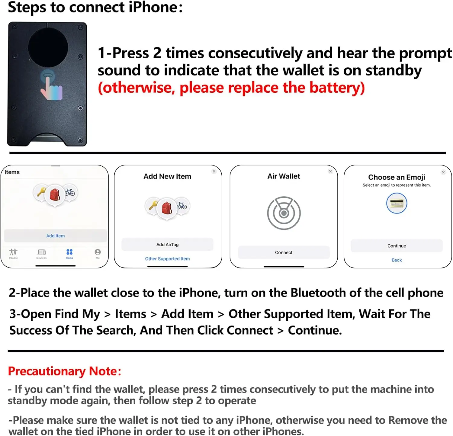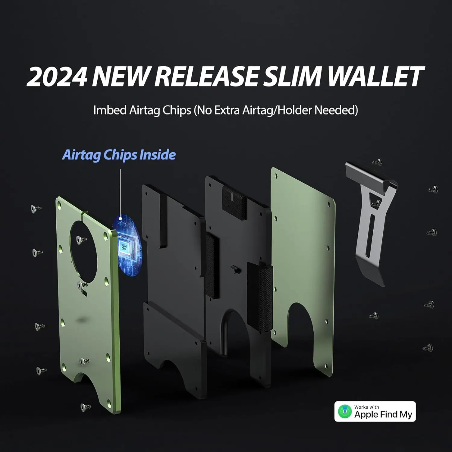 Porta carte di credito con blocco RFID, portafoglio sottile da uomo, compatibile solo con Find My iOS, fermasoldi staccabile