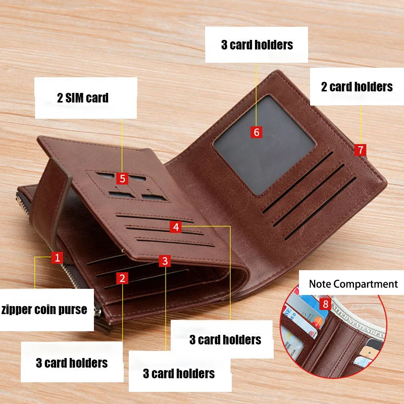 Portafoglio da uomo in pelle Porta carte RFID corto di lusso per uomo Portamonete con cerniera Portafoglio portatile da uomo