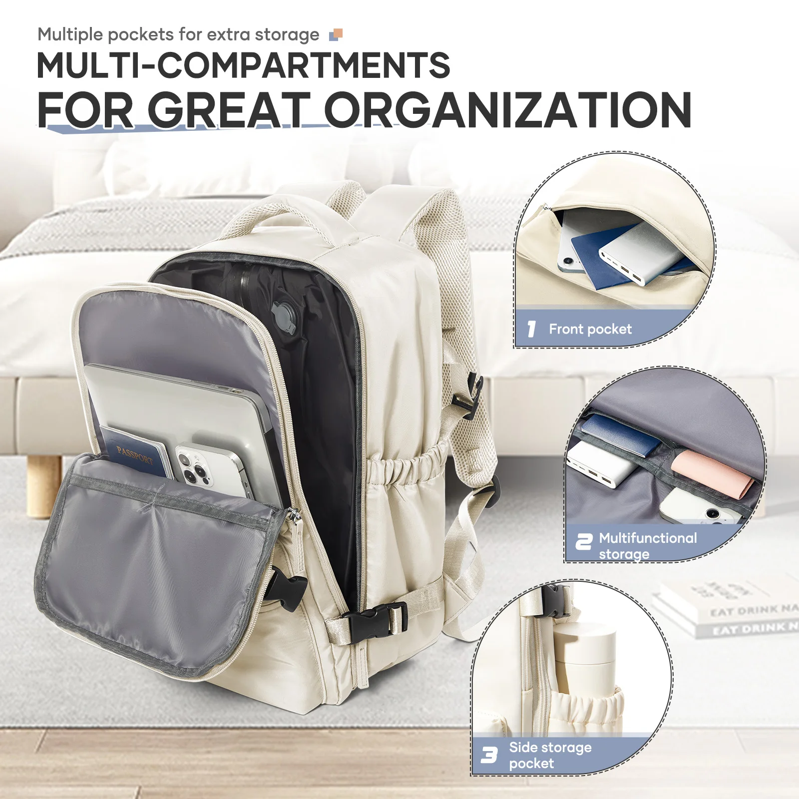 Zaino da viaggio per compressione sottovuoto da uomo e donna, zaino per laptop da 15,6 pollici, borsa per riporre indumenti sottovuoto, borsa da cabina Ryanair 40x20x25