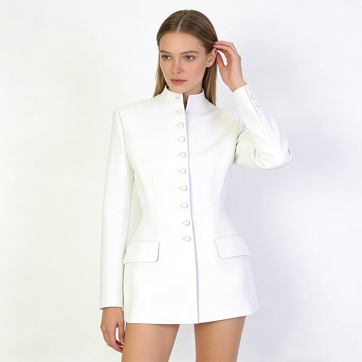 BJTZ 2026 Giacca Primaverile da Donna Tinta Unita con Colletto Rialzato Monopetto, Vita Stretta e Design Elegante per l'Ufficio