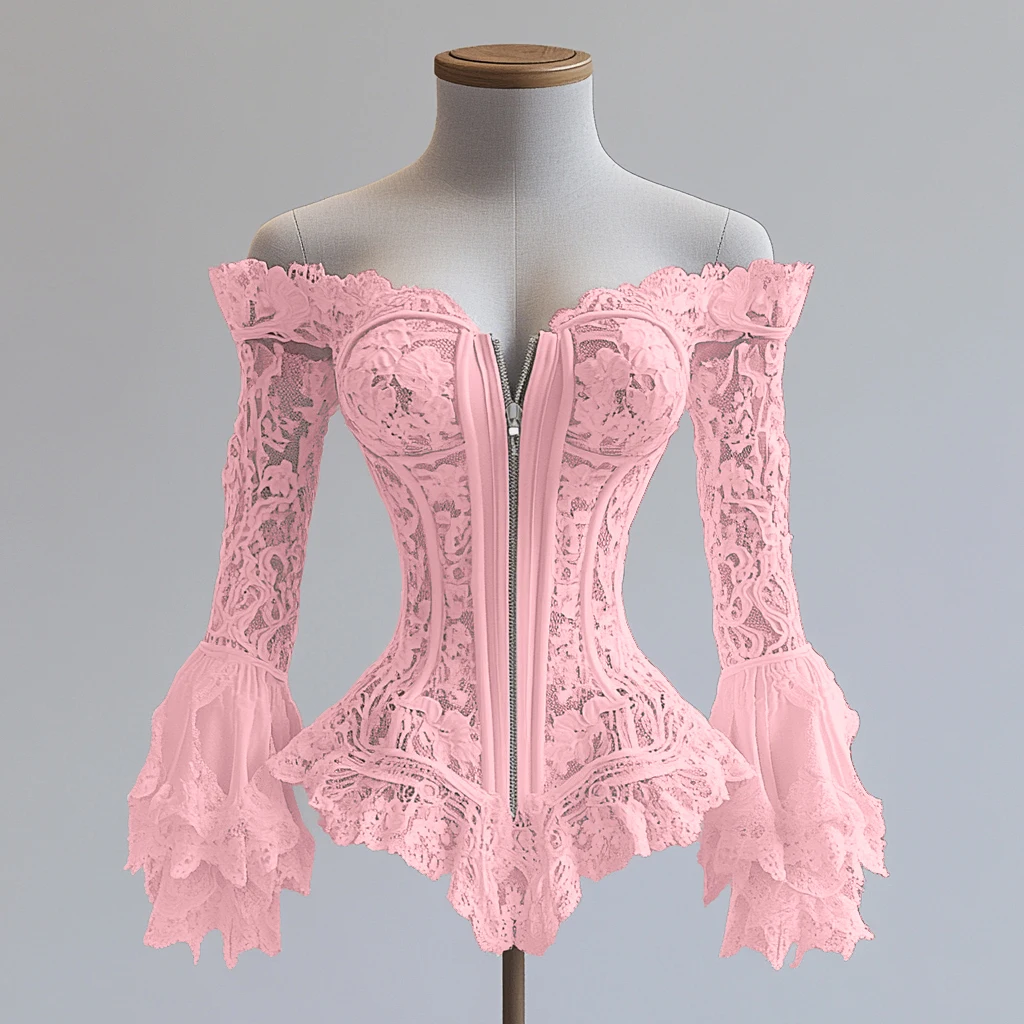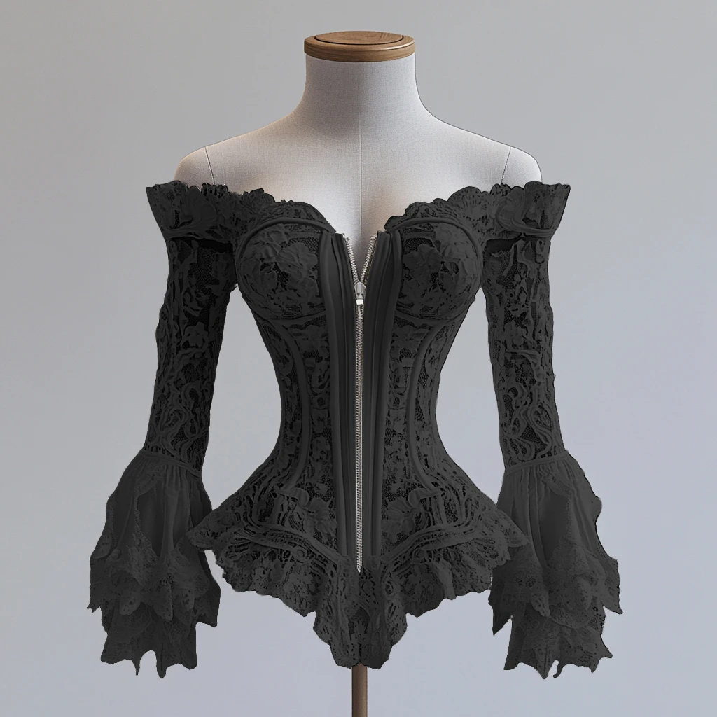 Camicetta con corsetto francese Camicetta con volant in pizzo con spalle scoperte Top a tubo con zip Bustier Overbust Top a tubo senza spalline dimagrante in vita da donna