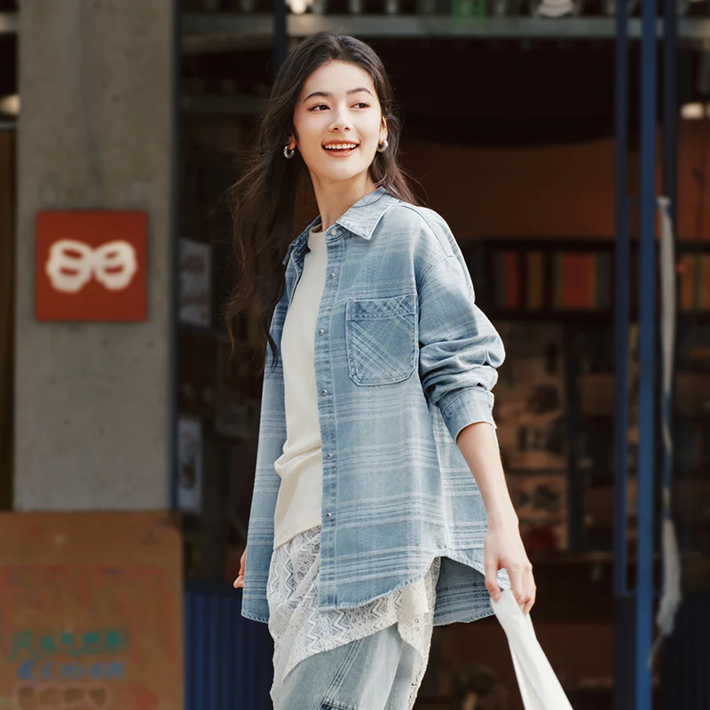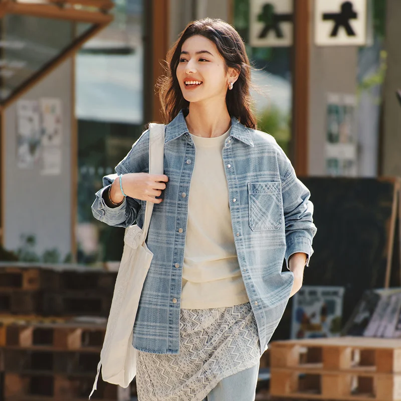 Camicia di jeans Semir da donna oversize primavera 2025 nuova giacca scozzese con camicetta a quadretti primaverile