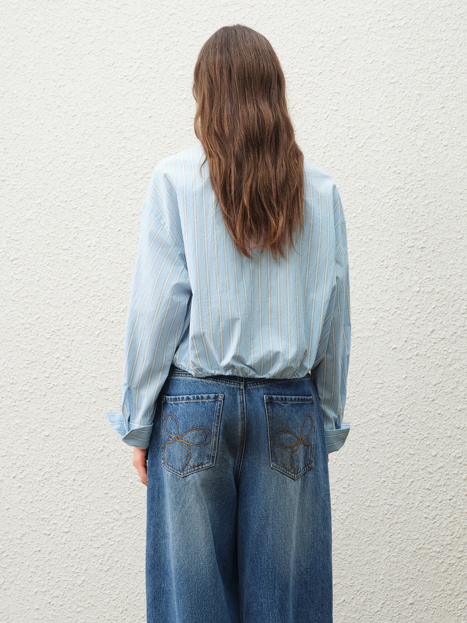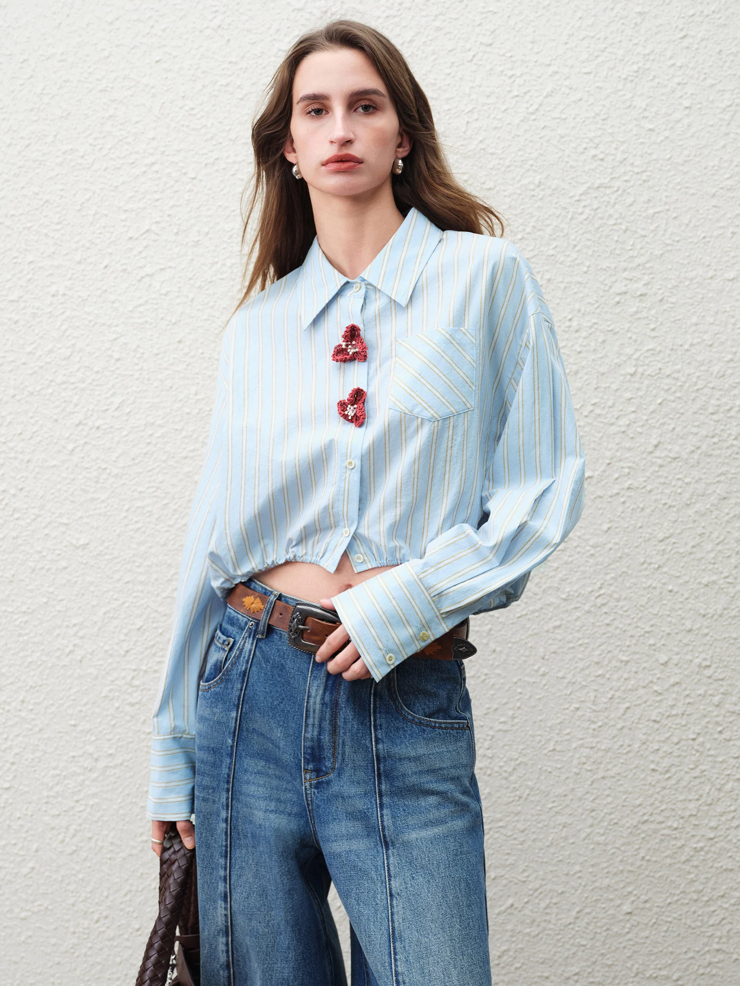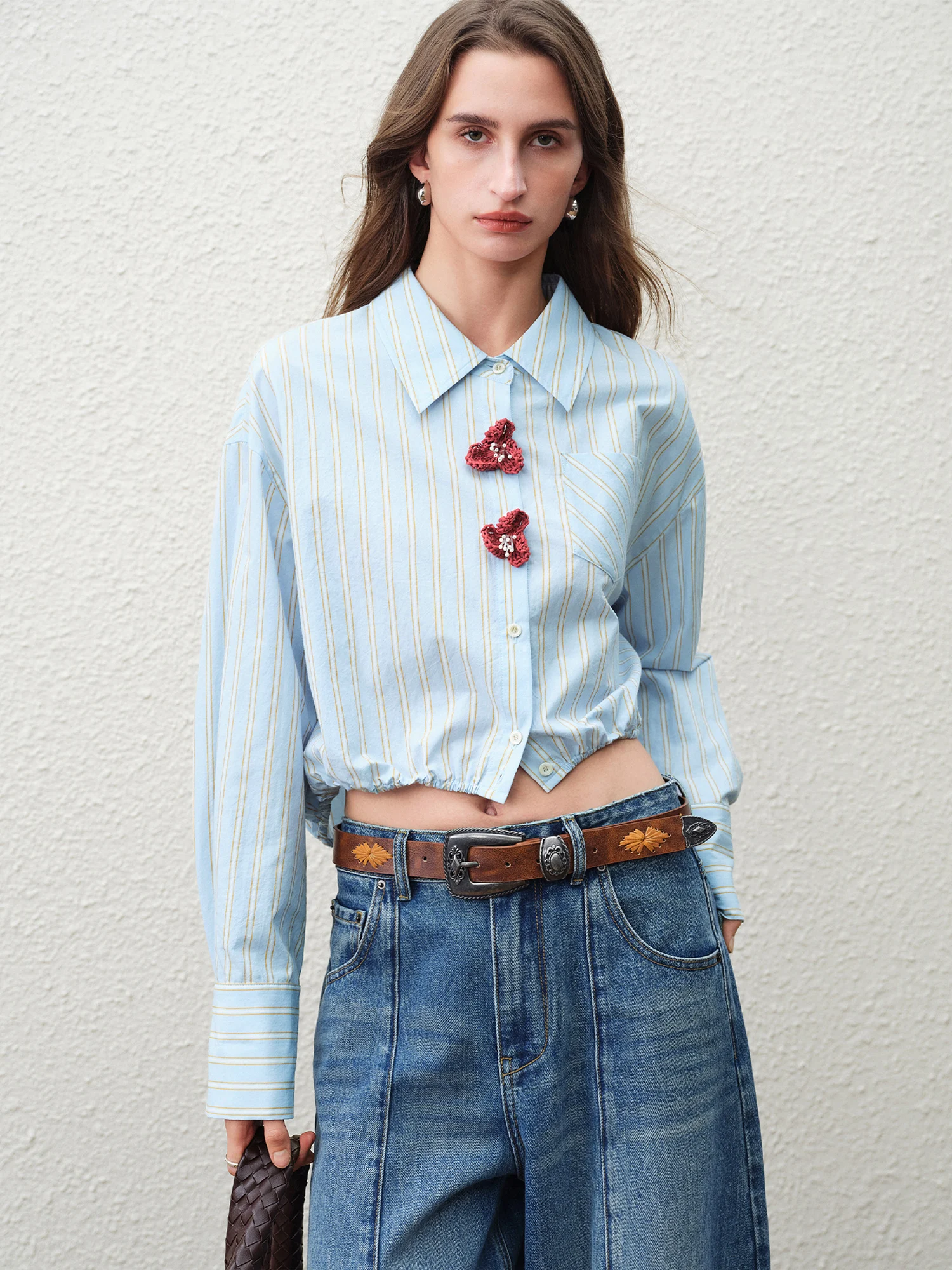 FSLE 2026 Nuova Collezione Primavera: Top a Maniche Lunghe da Donna con Design a Righe, 100% Cotone, Bottoni con Fiori 3D