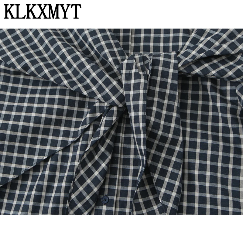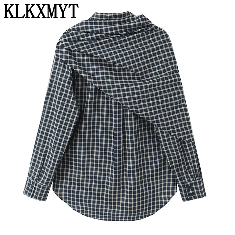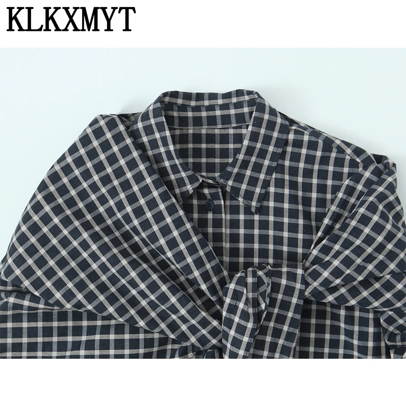 KLKXMYT 2026 Camicia Elegante da Donna a Maniche Lunghe con Fiocco e Patchwork Irregolare a Quadri, Nuova Blusa Primaverile alla Moda per Tutti i Giorni