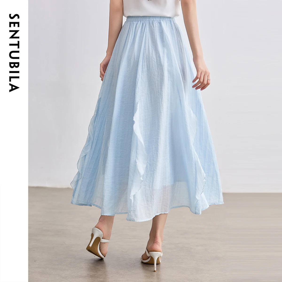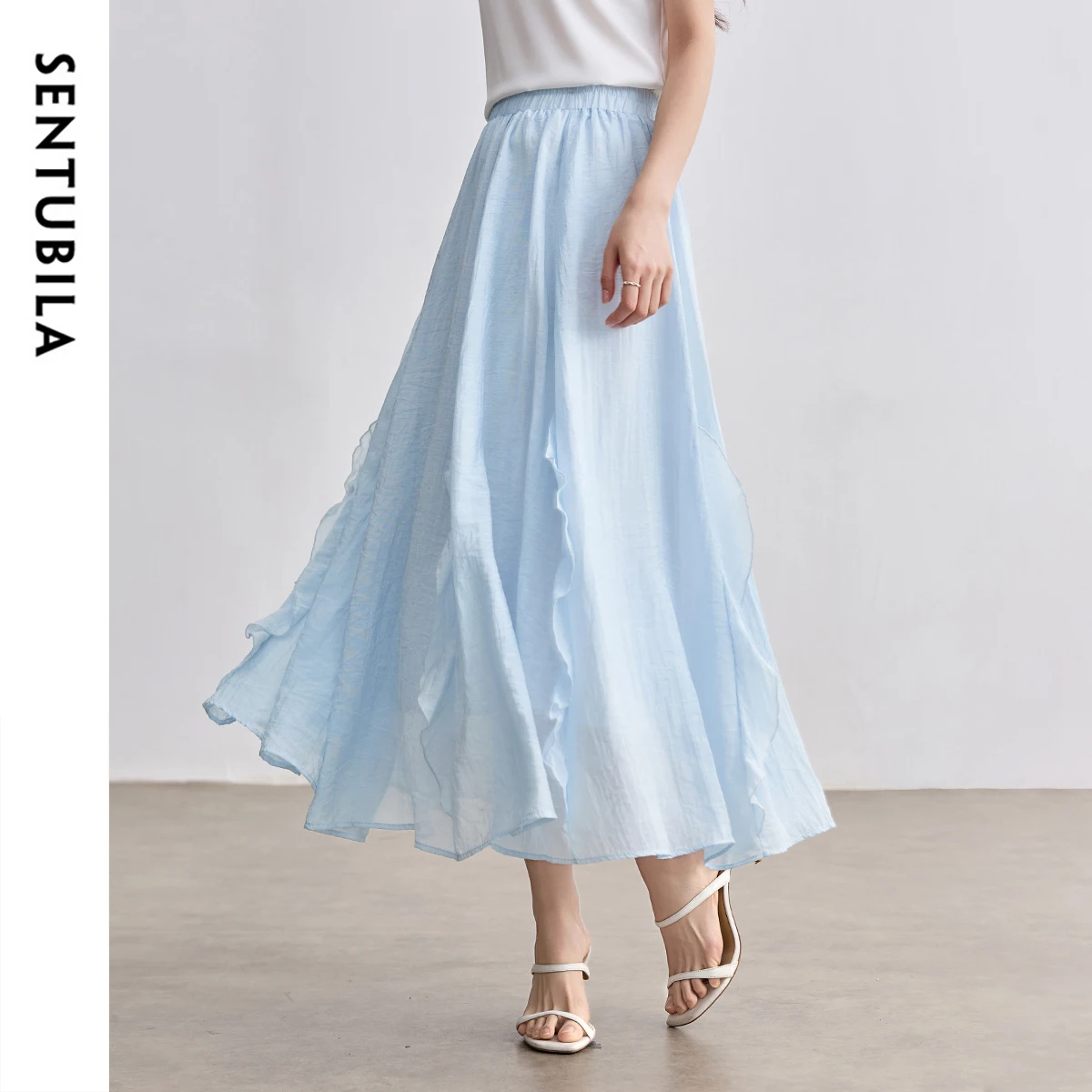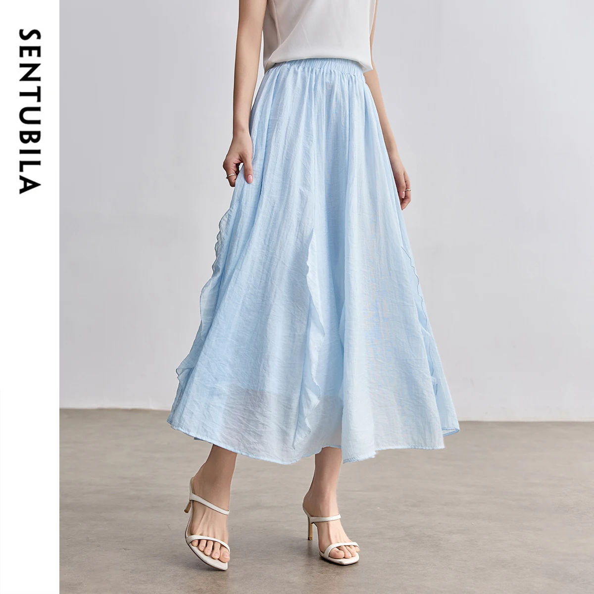 SENTUBILA Gonne da Donna a Vita Alta 2026 Estive Dolci a Pieghe Linea A Lunghezza Caviglia Eleganti Casual da Festa Blu W52QA2169