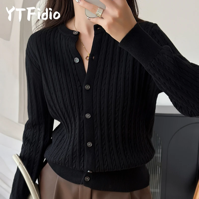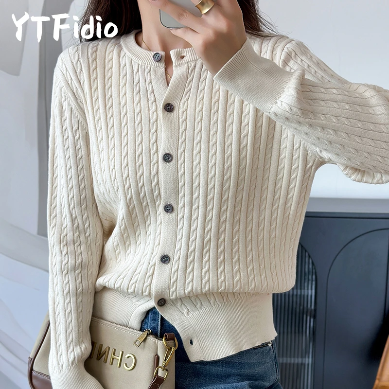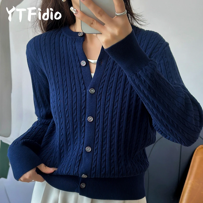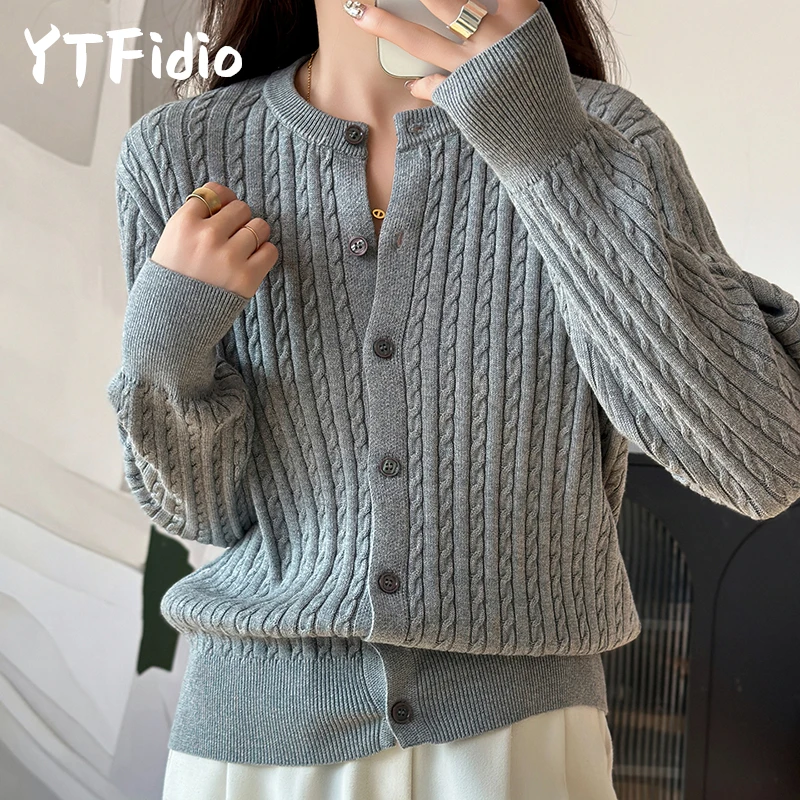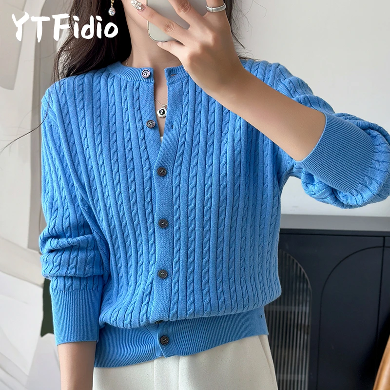 YTFidio 100% cotone donna O-Collo fiore intrecciato cardigan solido abbigliamento firmato di lusso donna pullover top femminili 392